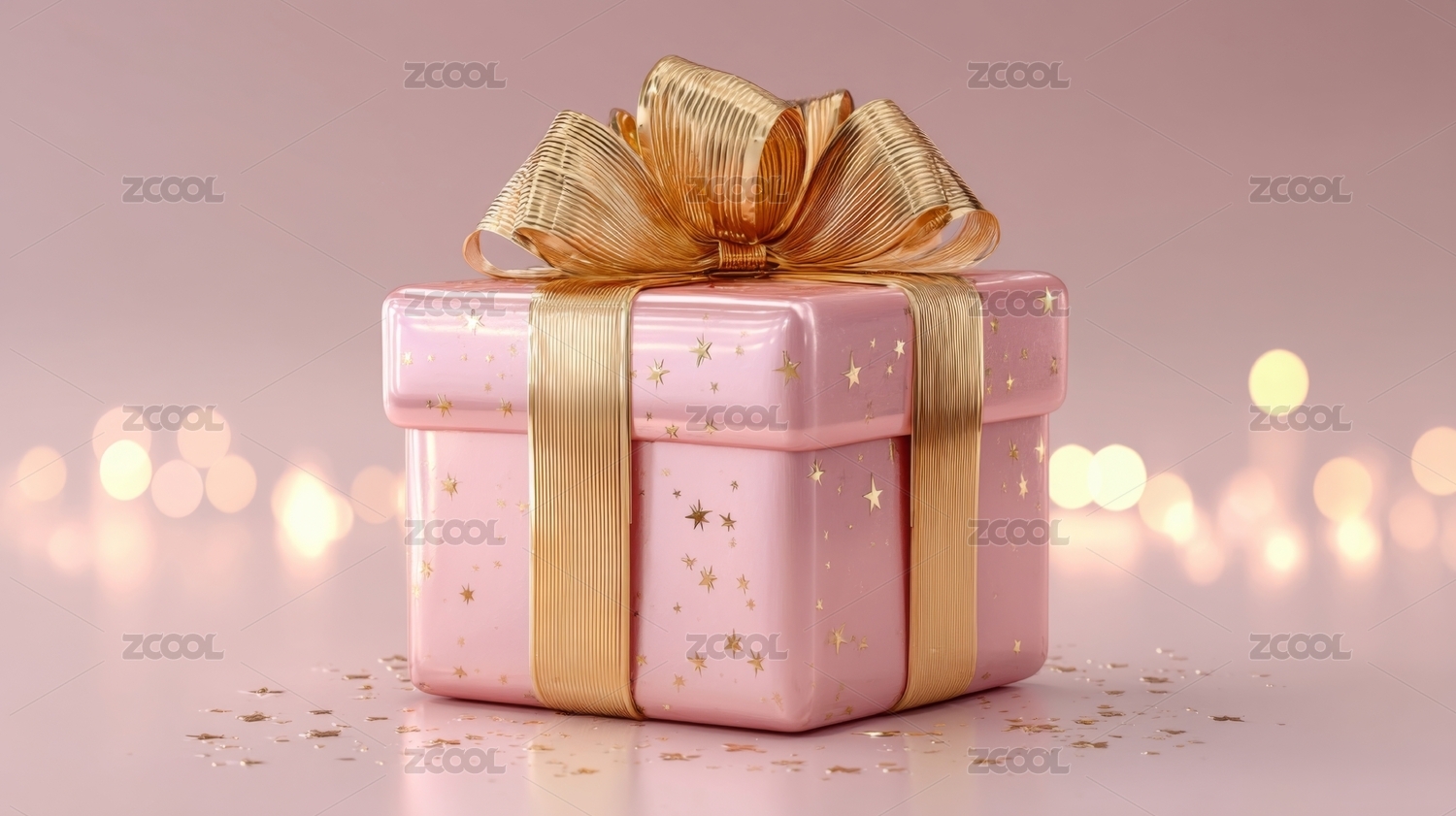 粉色礼品盒配梦幻光斑背景