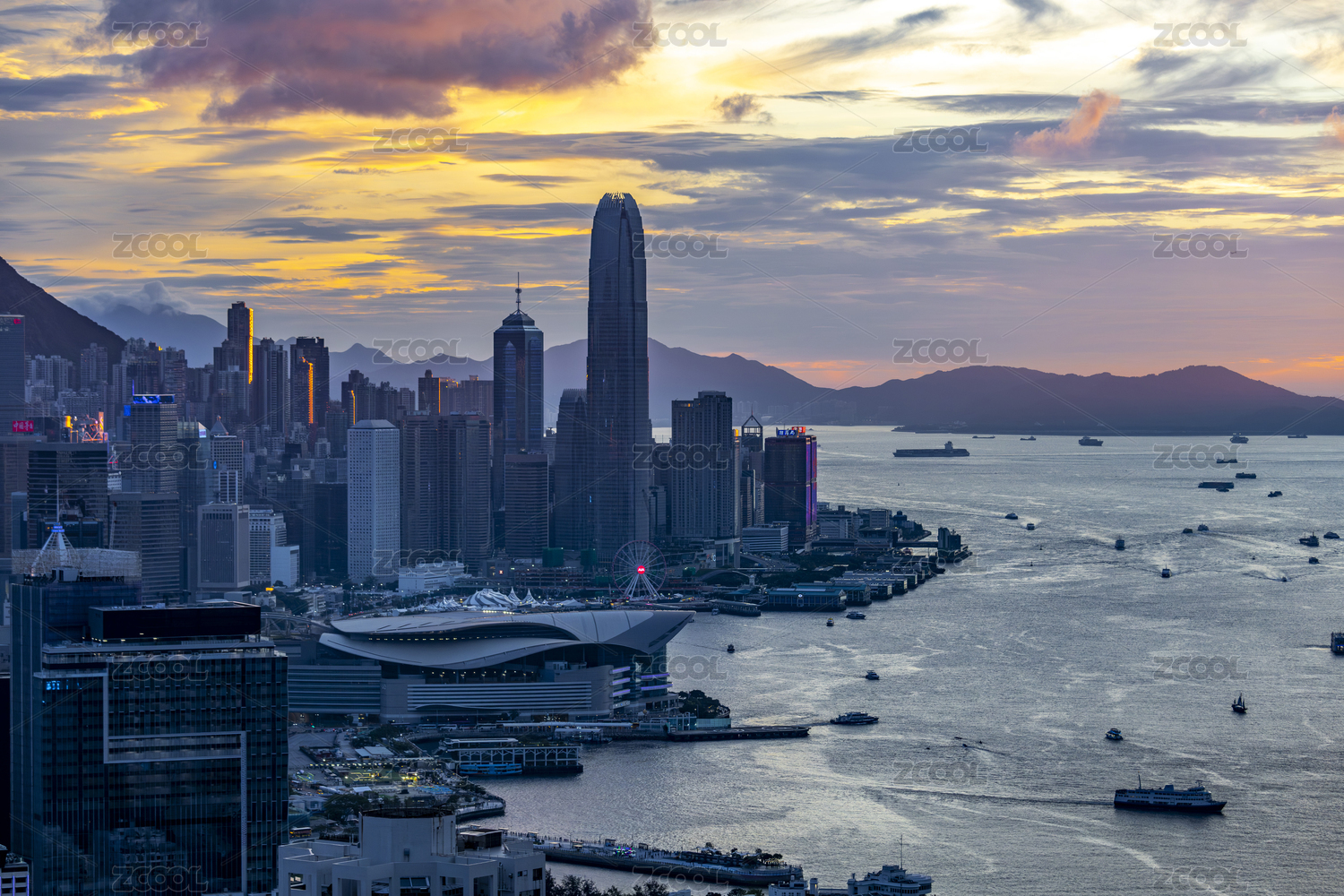 香港,维多利亚海湾,维港,夜景,全景,都市,城市,城市天际线,国际化,晚霞