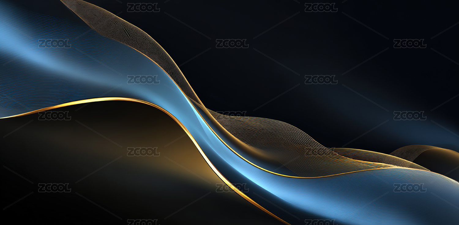 深蓝波浪与金色光带抽象背景