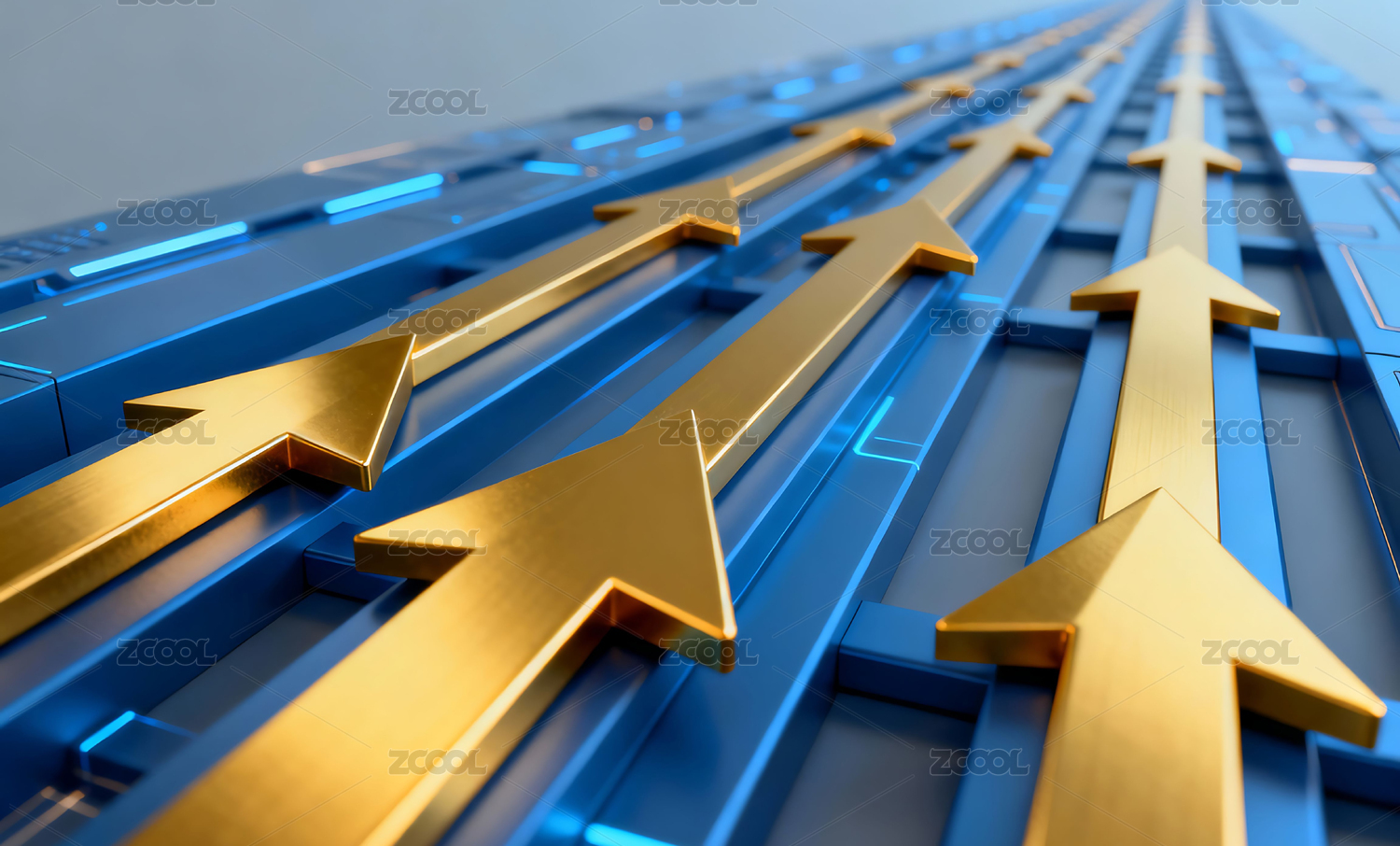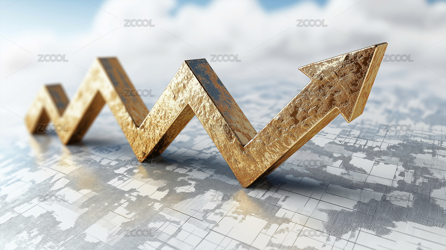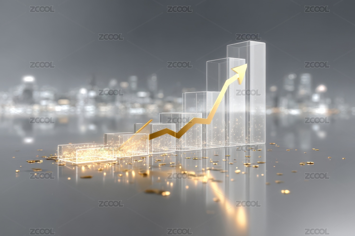 金色渐变玻璃质感金融柱状图增长箭头背景