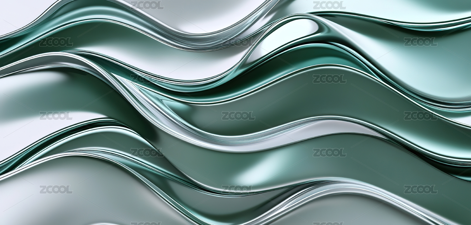 绿银色波纹线流体商务科技背景