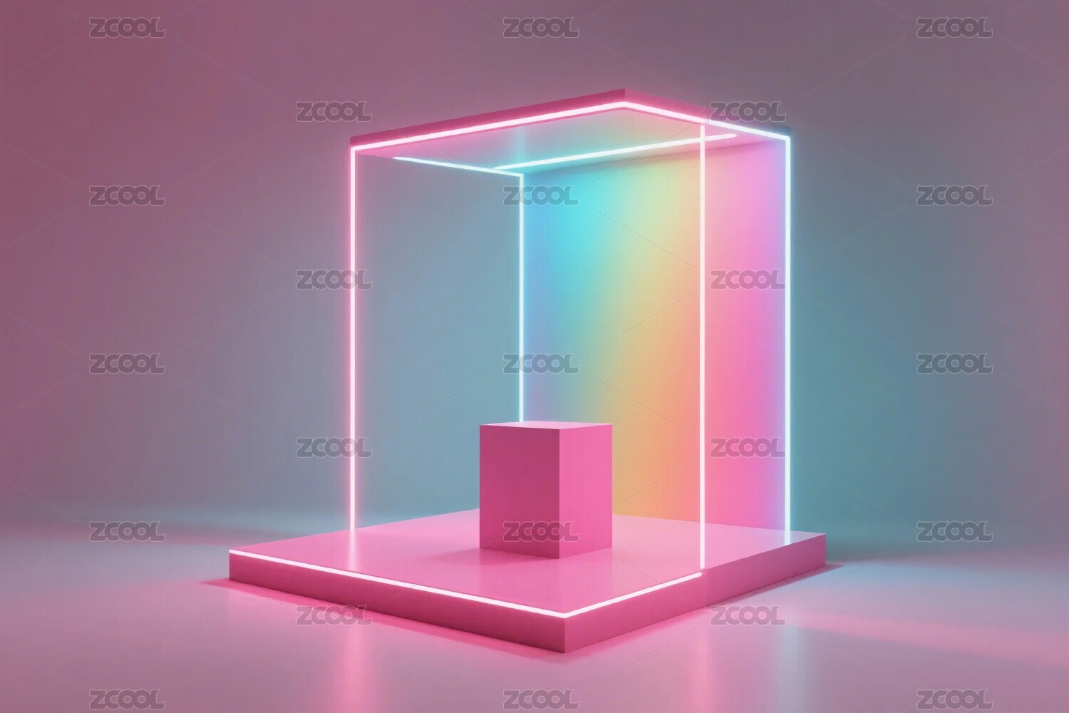 抽象霓虹灯发光几何线条3D渲染商务背景