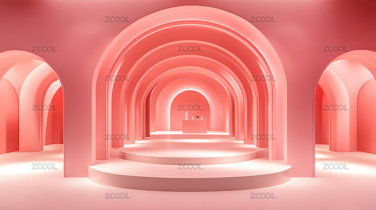 橙色光球的未来走廊 拱形走廊的神秘光影