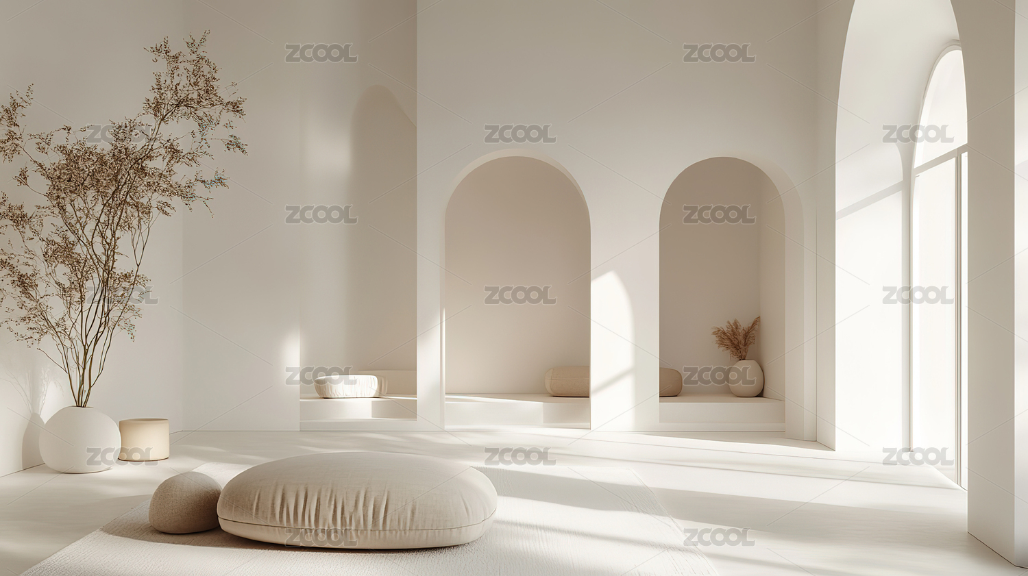 简约白色拱门室内场景