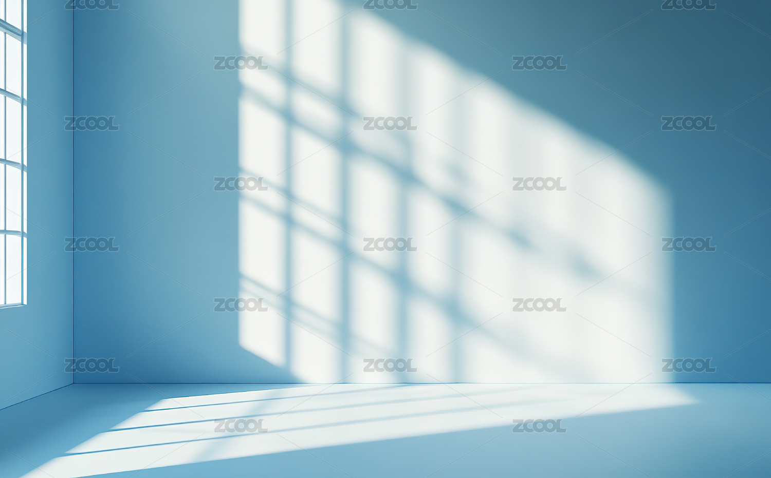 蓝色房间阳光透过窗户洒在地面