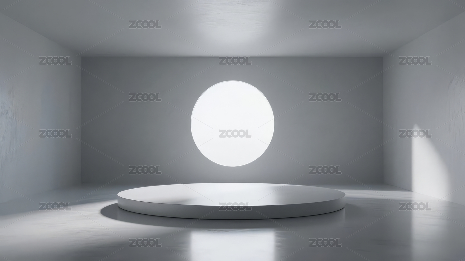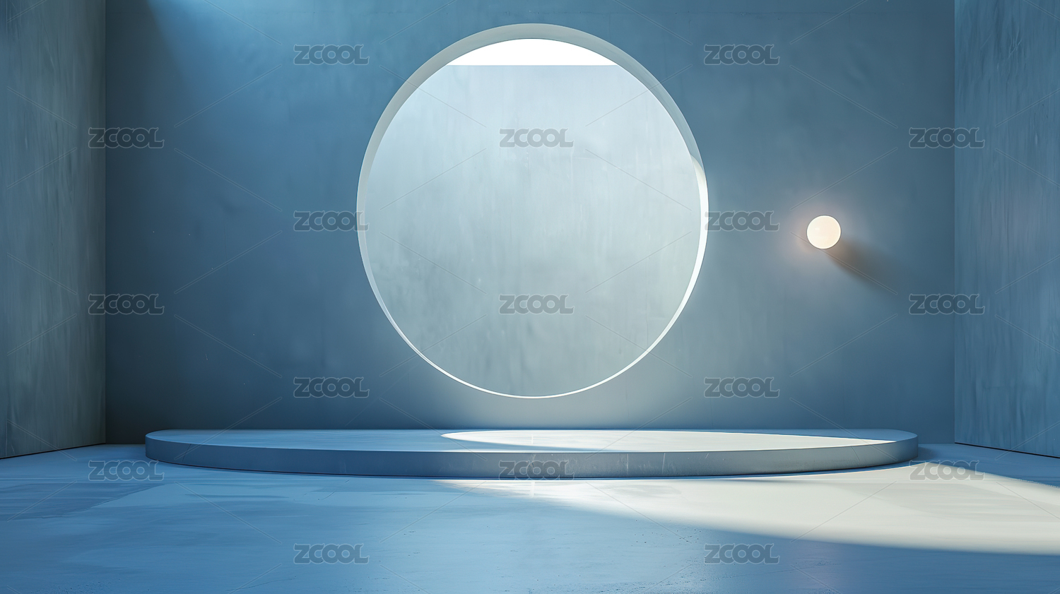 简约室内空间,圆形平台与光斑