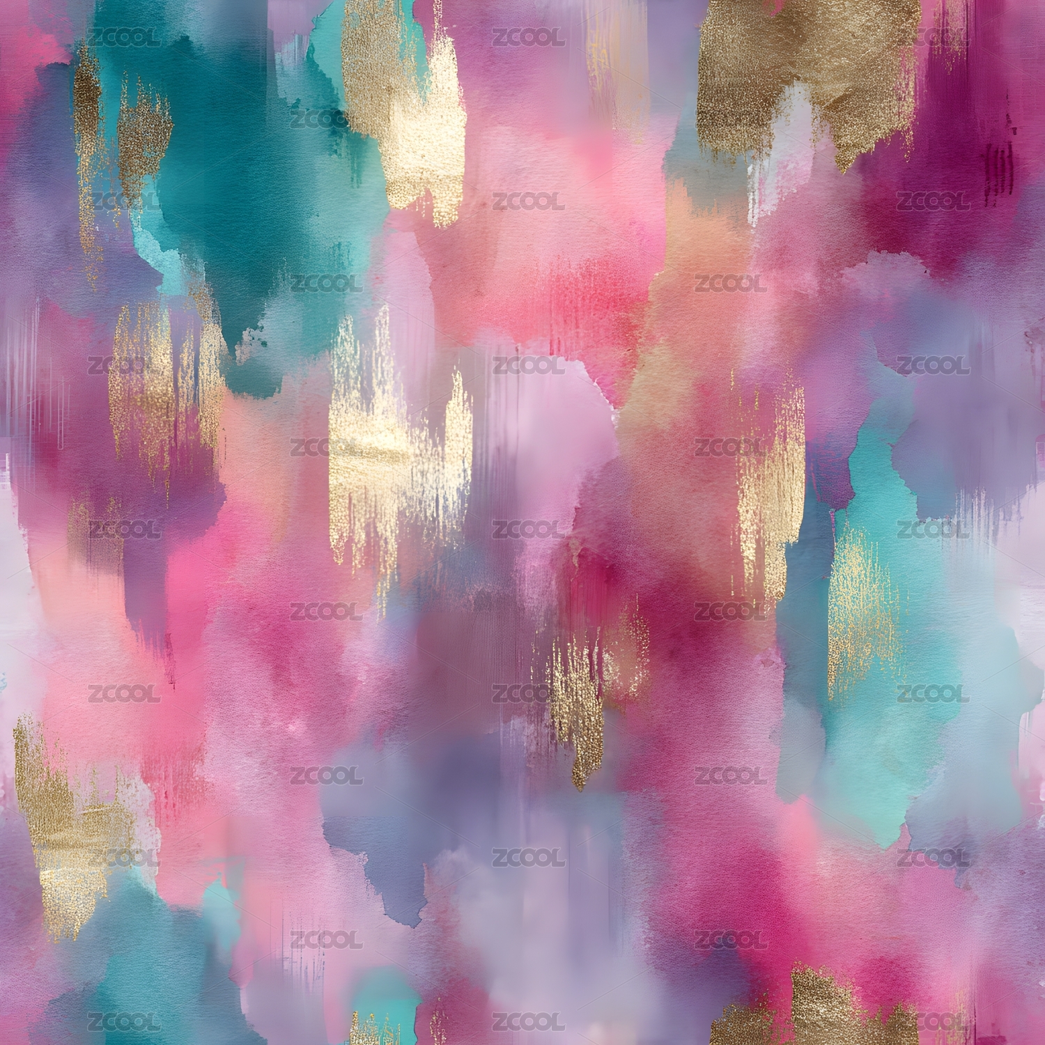 多彩水彩与金色笔触交织图案
