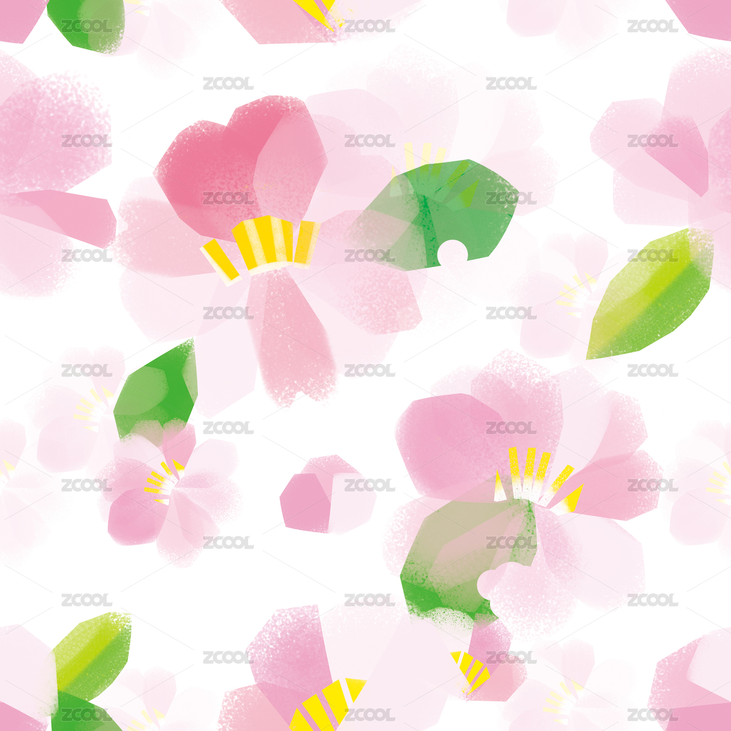 樱花梅花粉色花绿叶无缝重复平铺