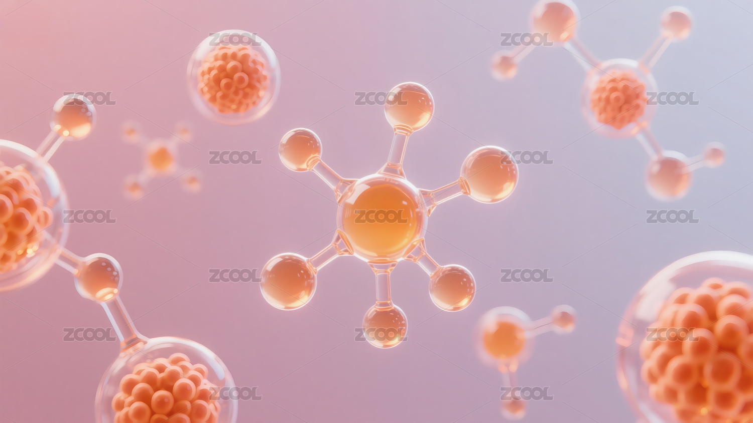 细胞,分子,精华,橙色,暖色,3D,科技,科学,生物学,抽象