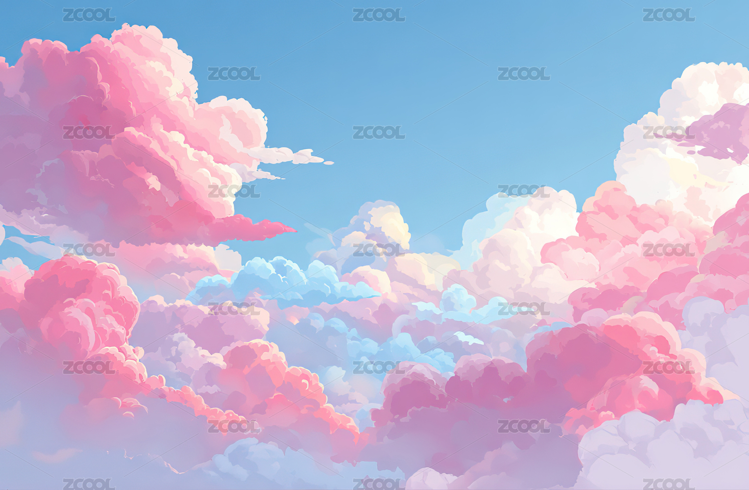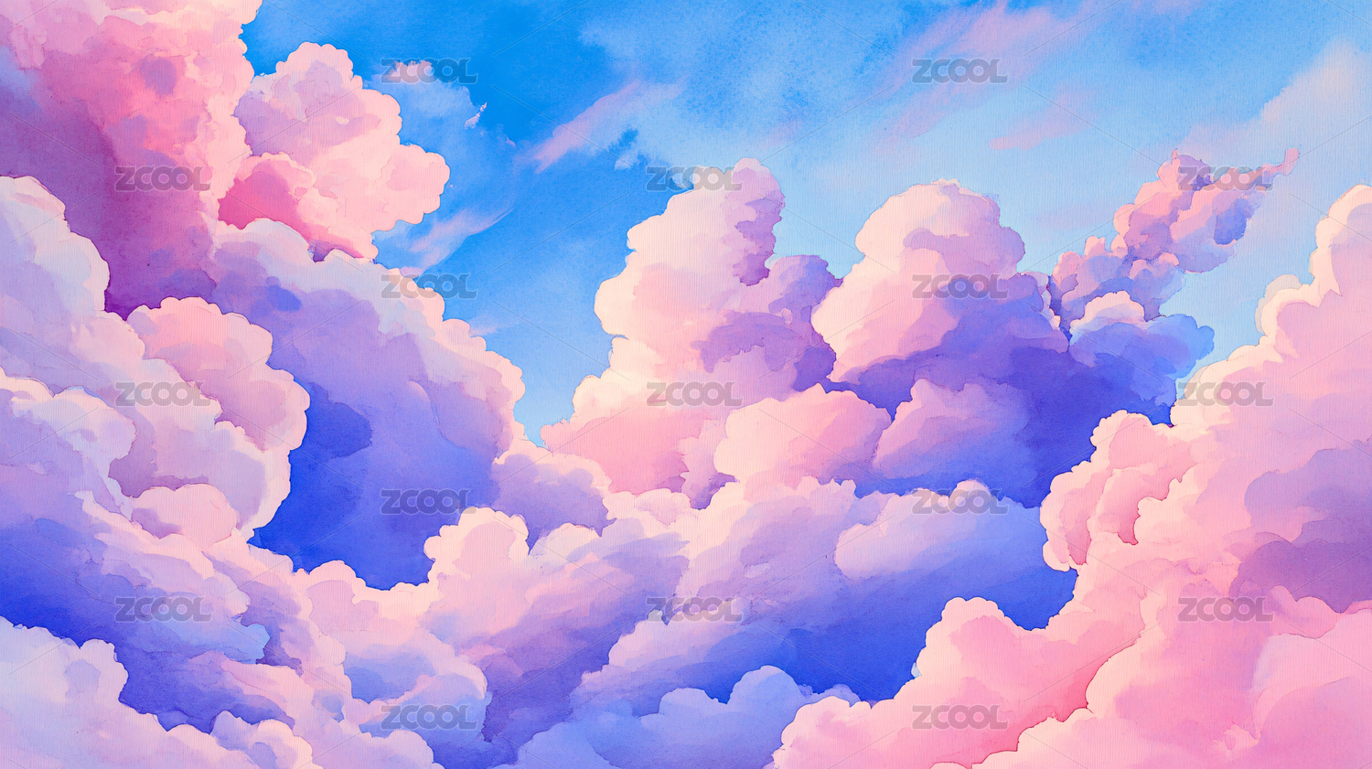 水彩风格抽象天空彩云PPT海报主视觉背景
