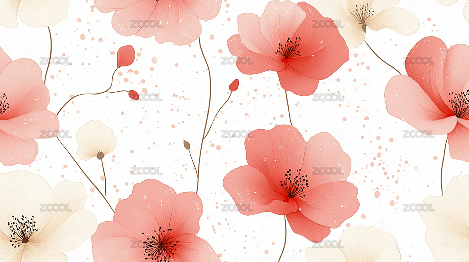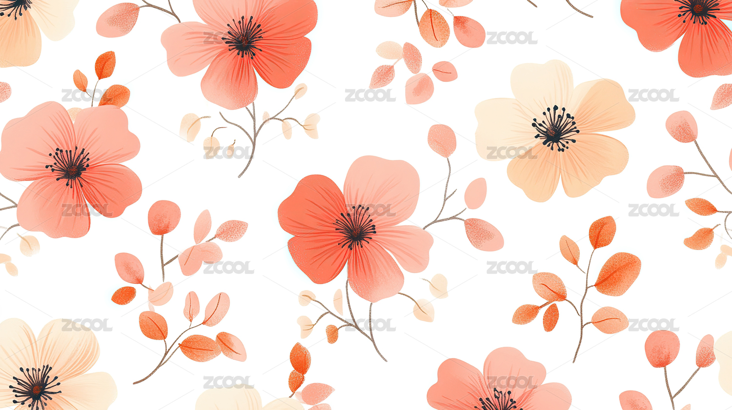 精致的粉色和白色花朵以扁平矢量风格绘制