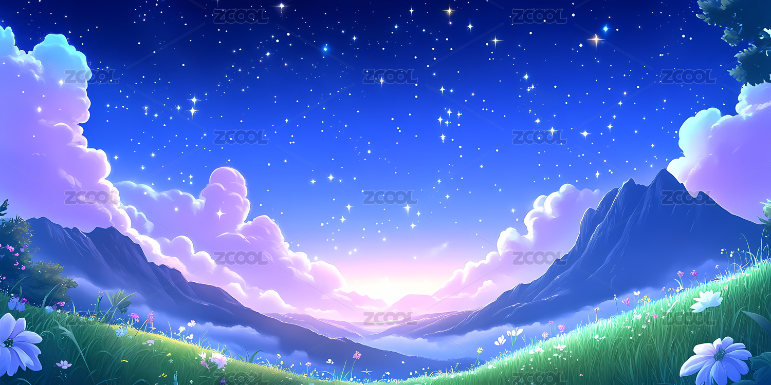 星空,山丘,自然,风景,艺术,蓝色,宁静,远山,梦幻,明亮