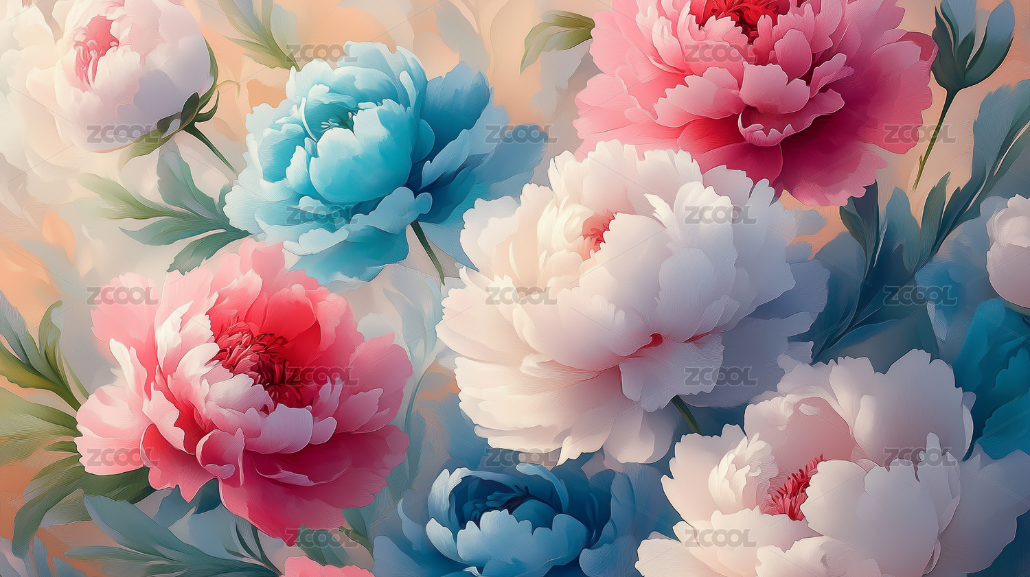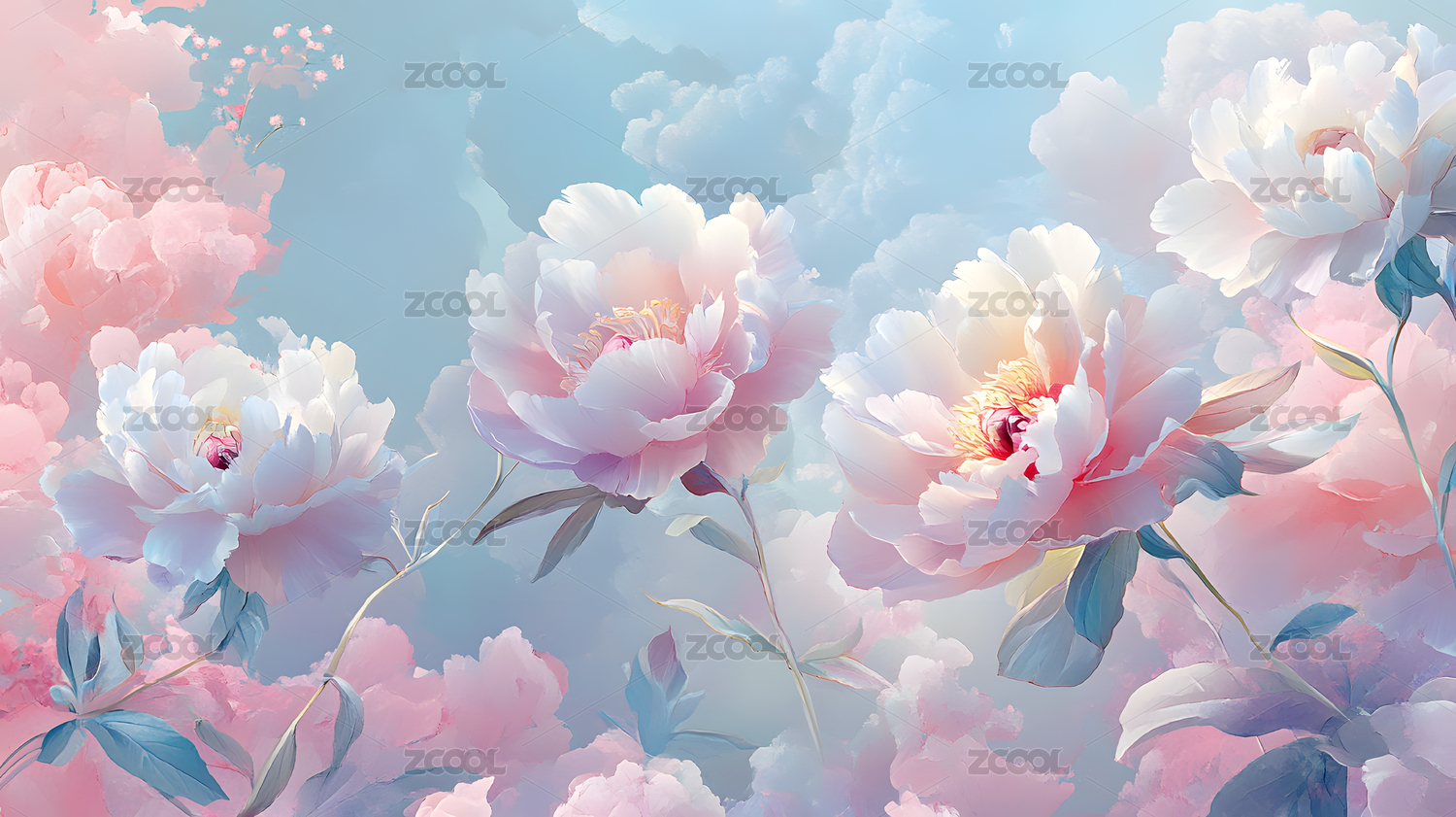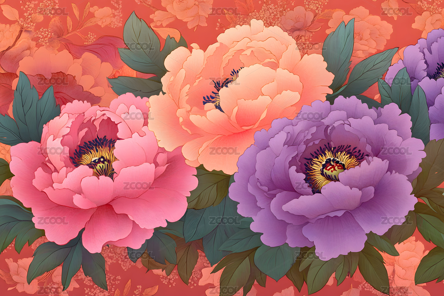 复古怀旧牡丹花卉壁纸背景海报装饰画背景