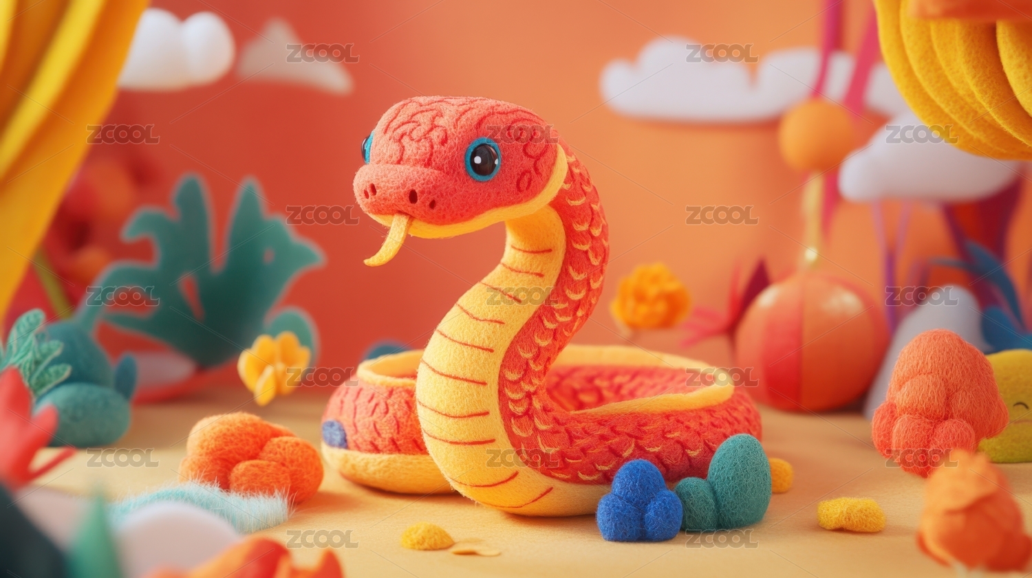 蛋糕,装饰,黄色,粉色,蛇,编织,橙色,玩偶,舌头,星星