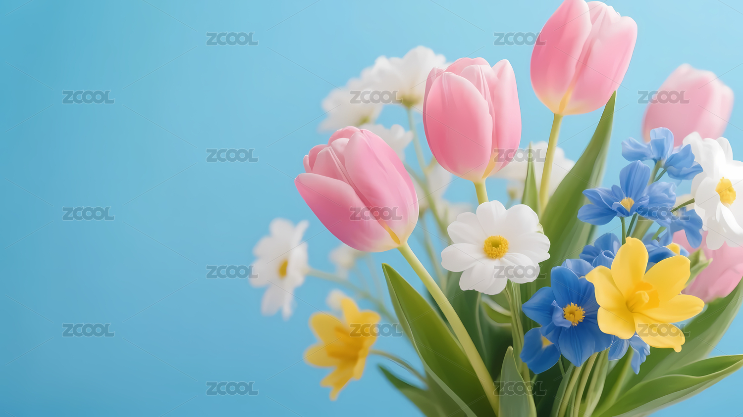 背景,蓝色,紫色,郁金香,黄色,粉色,花朵,鲜艳,清新,明亮