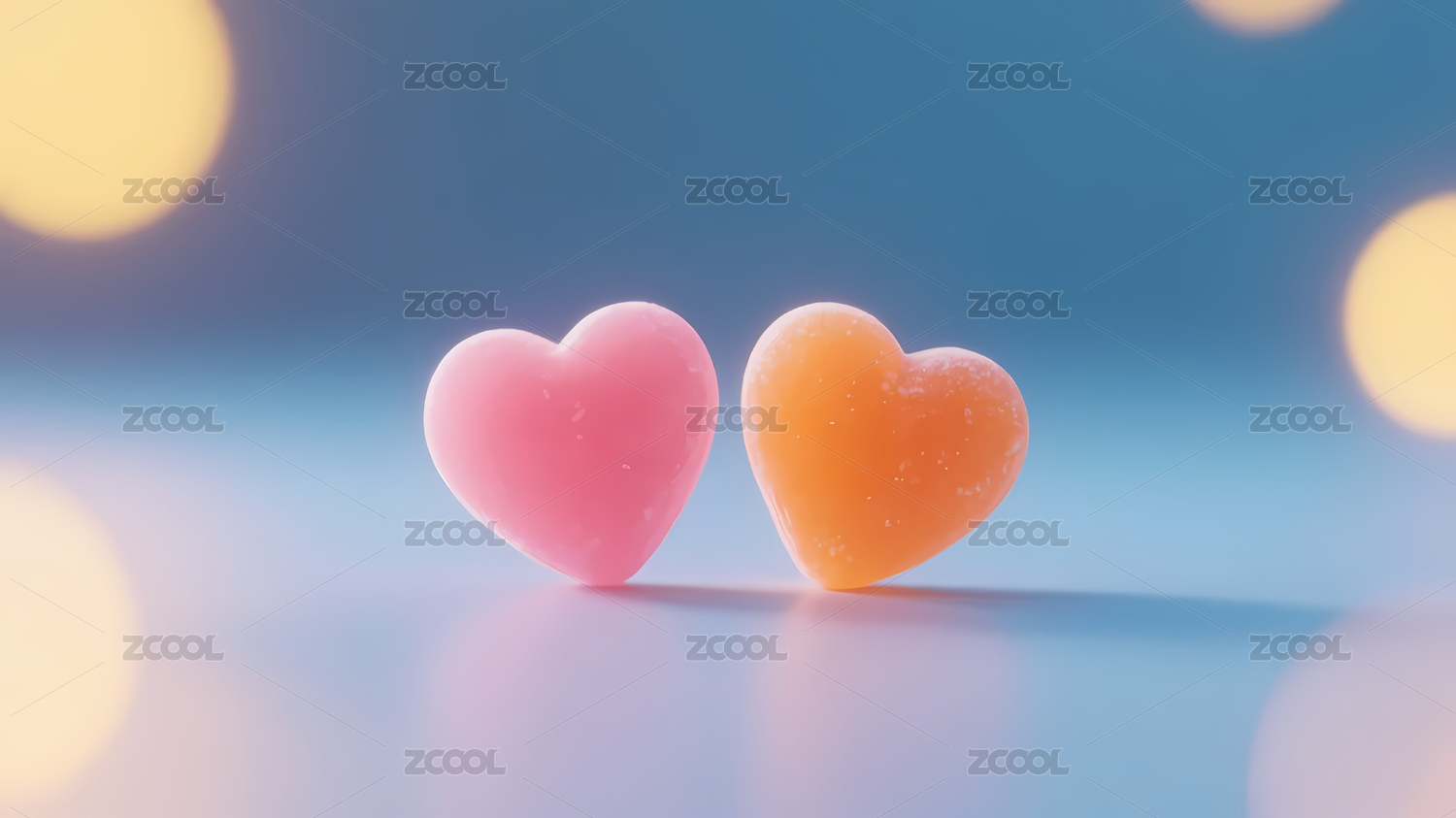 蓝色,背景,黄色,模糊,柔和,心形,糖果,粉色,温馨,甜美