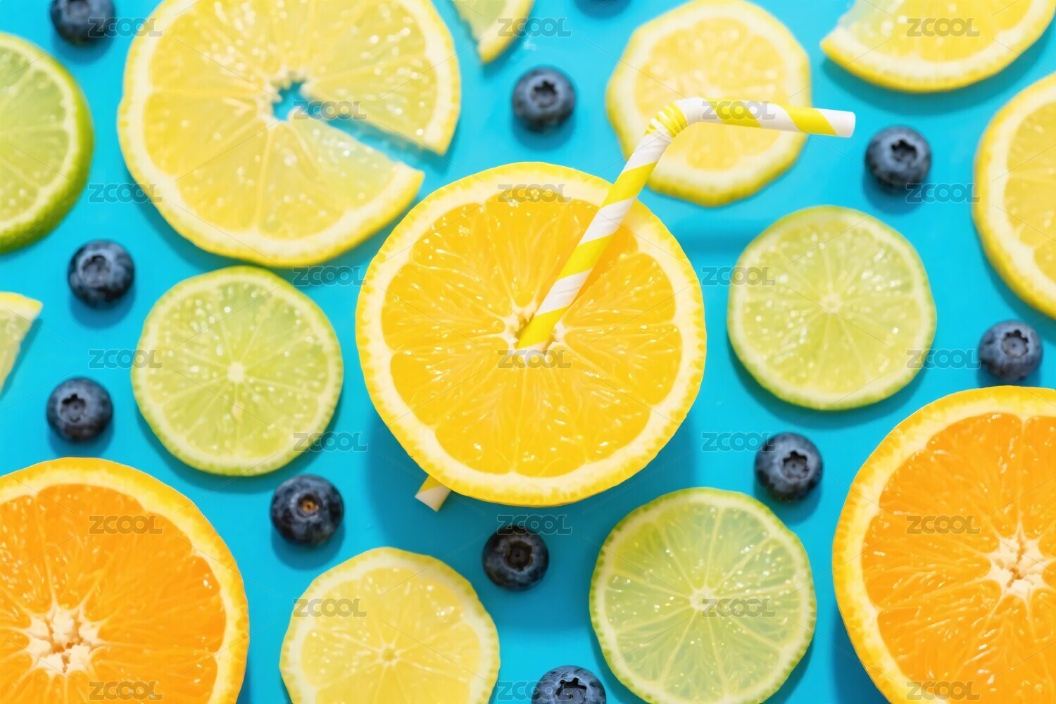 蓝色,黄色,背景,鲜艳,主体,糖果,排列,多彩,柠檬片,组合