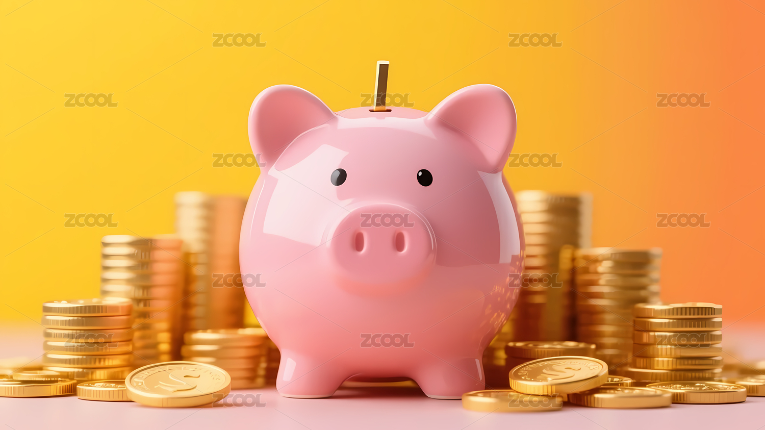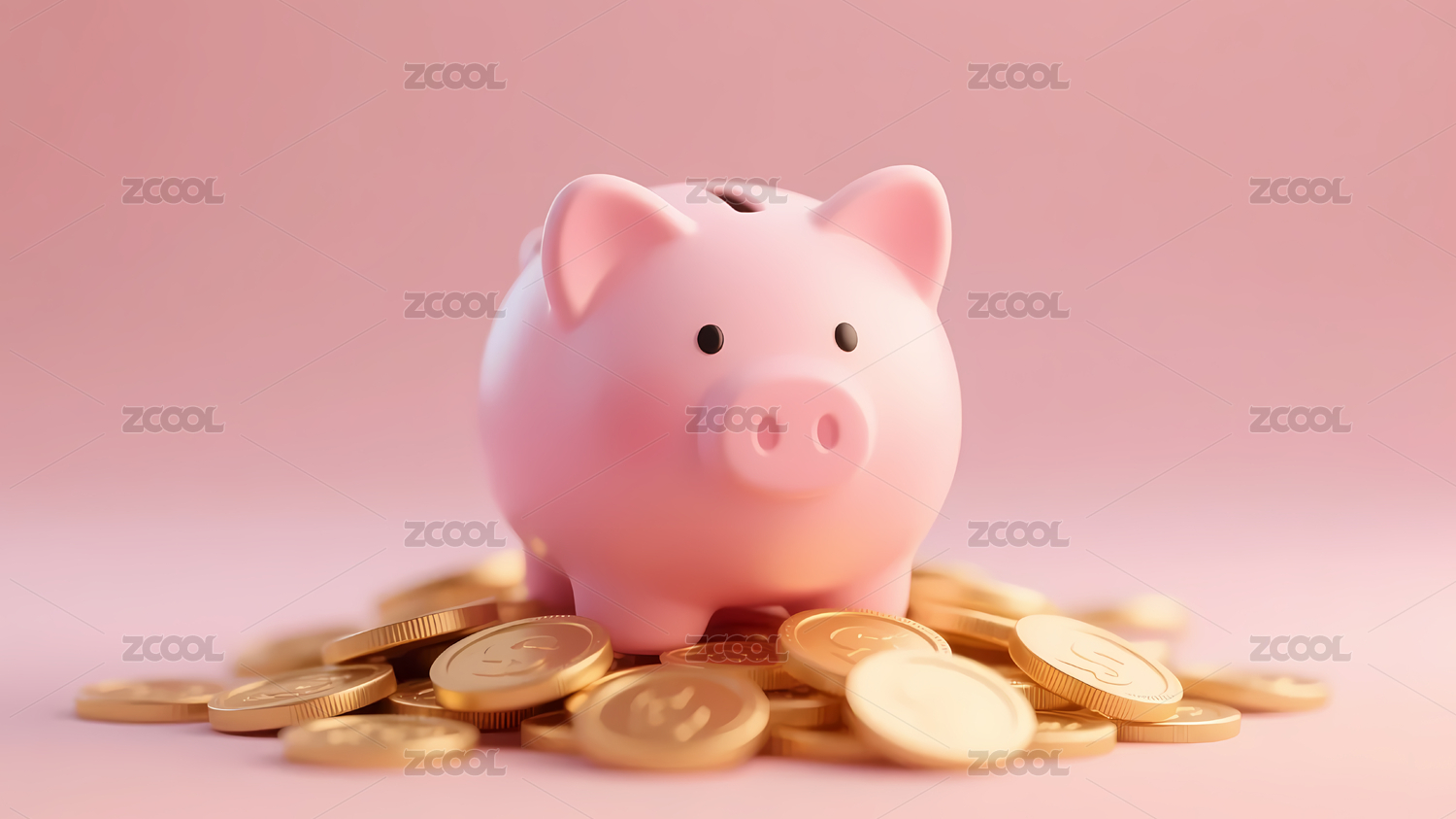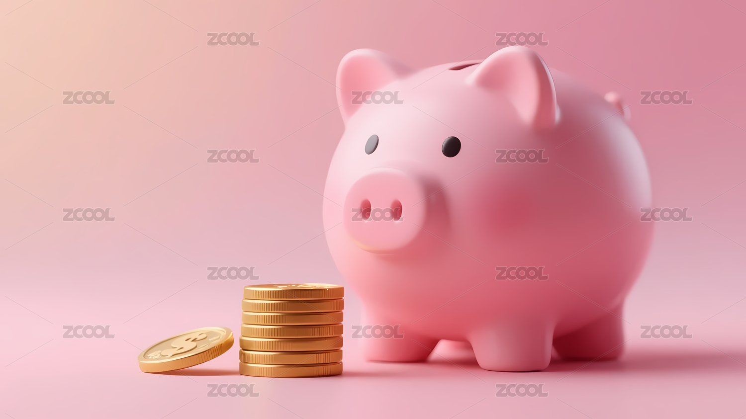 背景,粉色,金色,金币,财富,色彩,储蓄罐,堆积,简单,物体