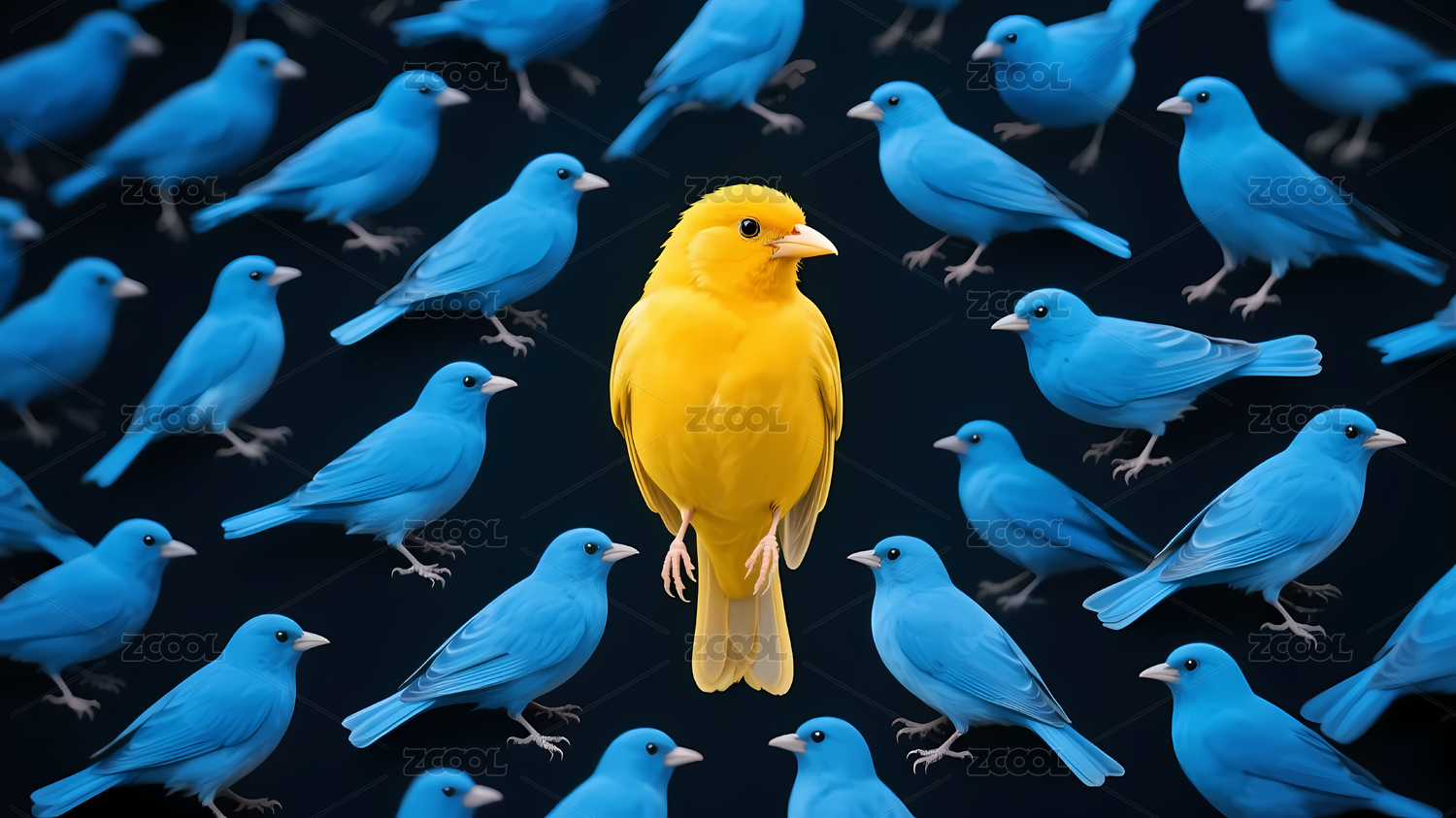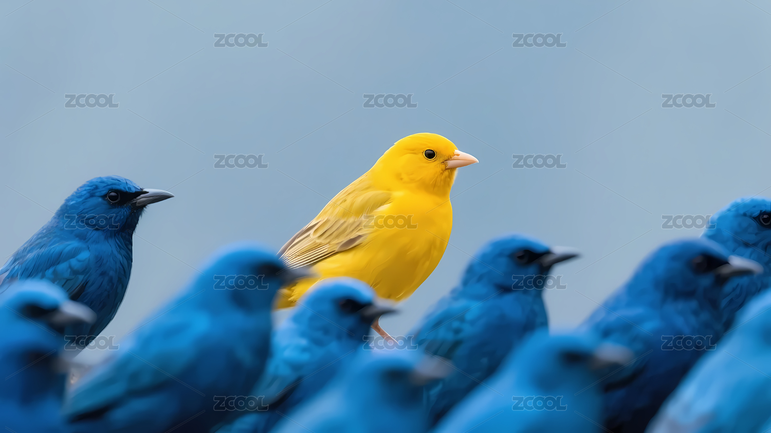 黄色鸟突出蓝色鸟群