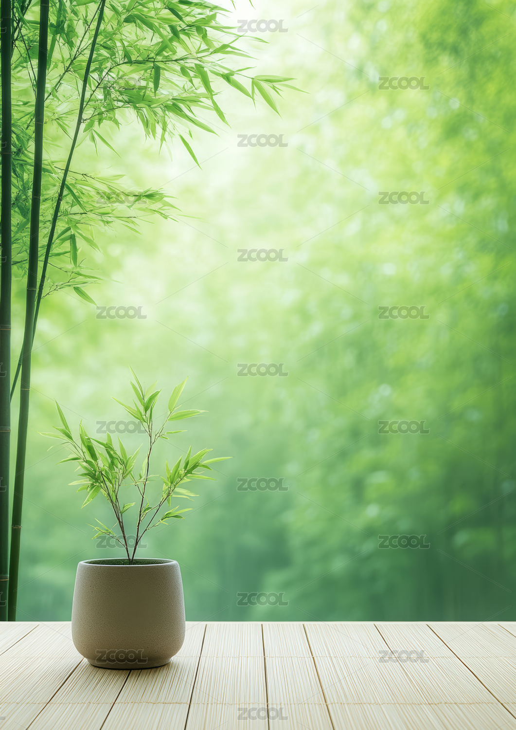清新的绿色竹林背景电商产品展示台