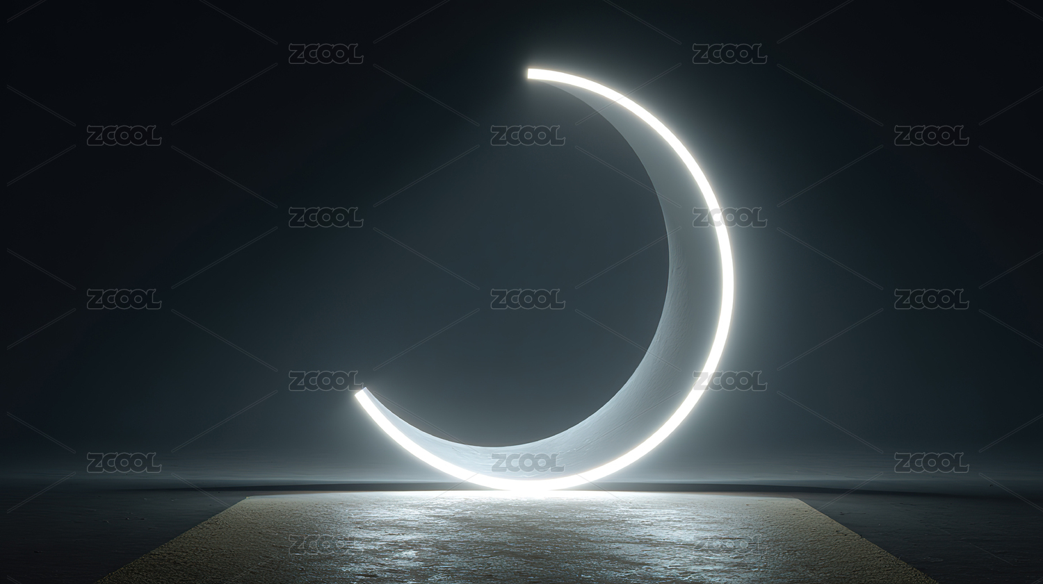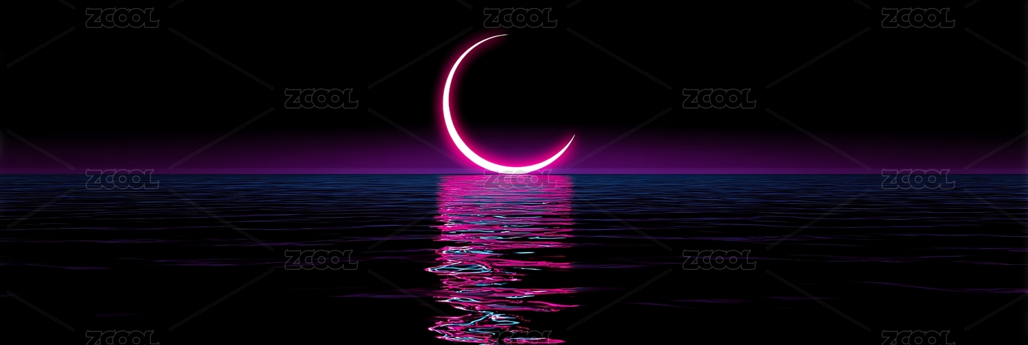 唯美,倒影,霓虹,紫色,月亮,发光,光线,海面,水波,夜空