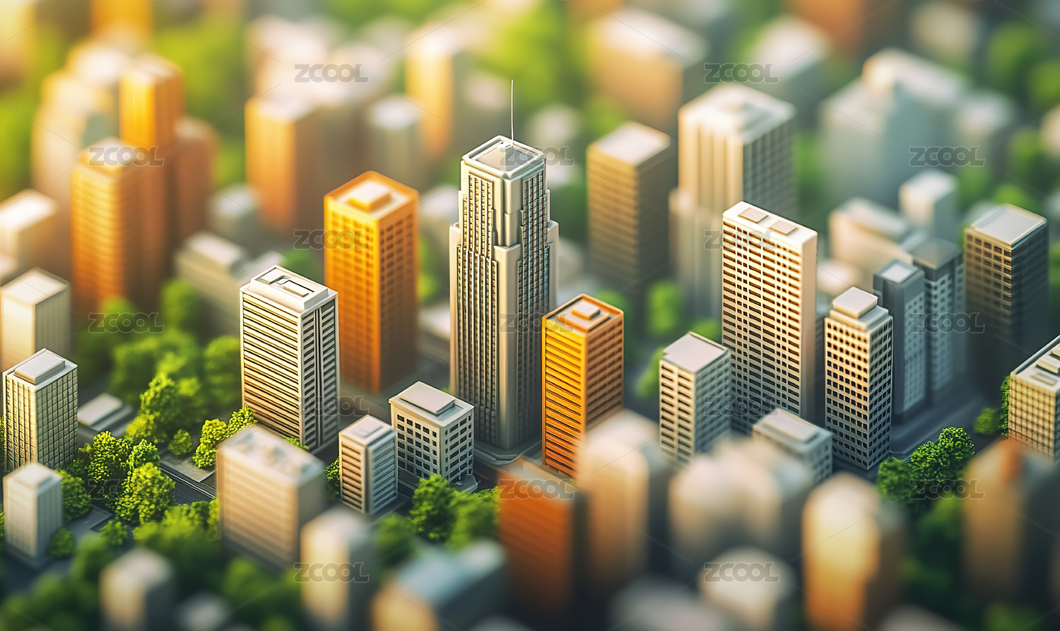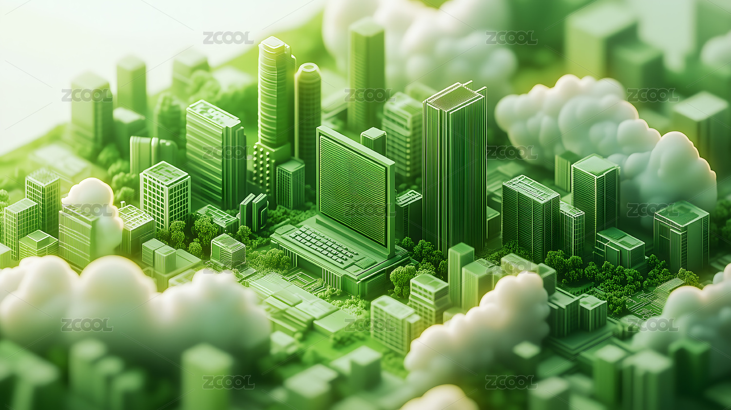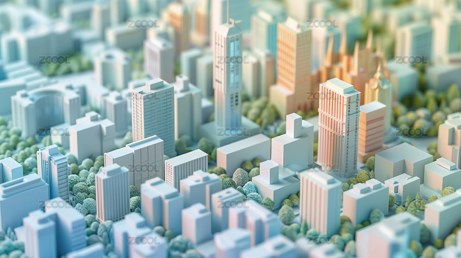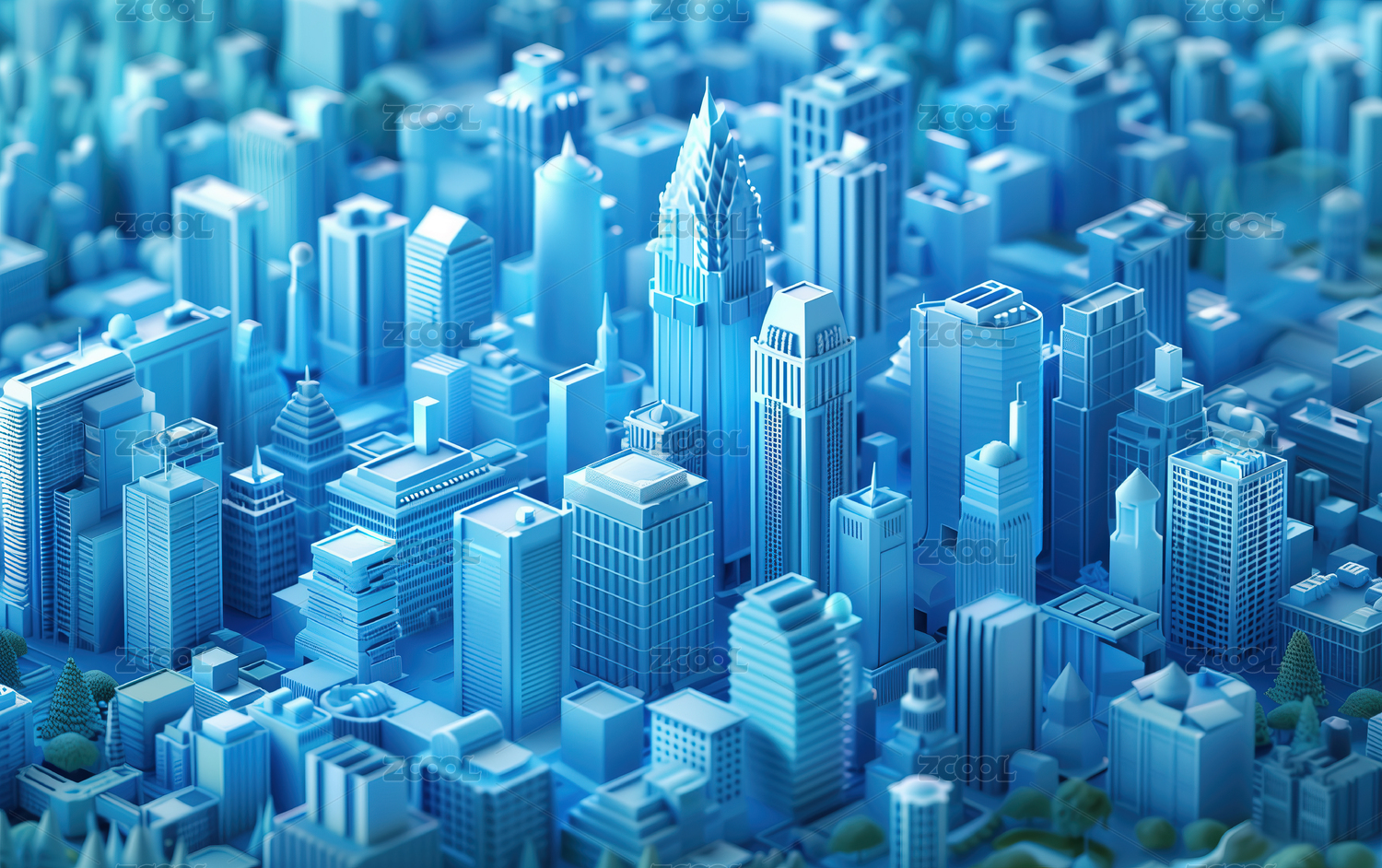 抽象科技科幻清新明亮城市建筑3D立体插画