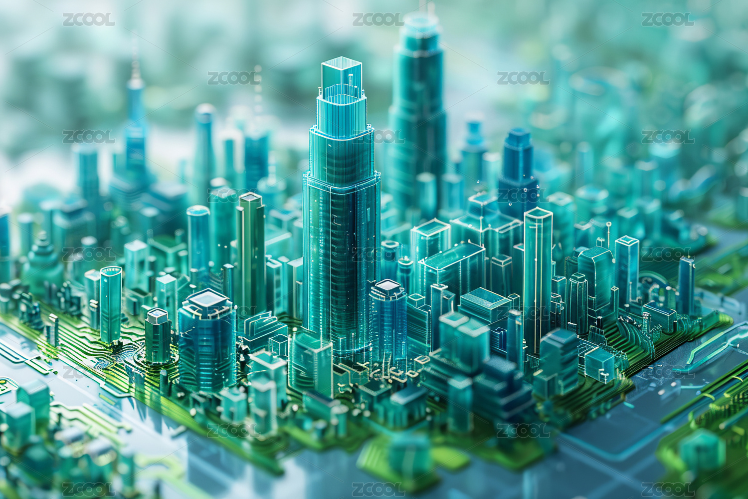 蓝色毛玻璃俯瞰城市建筑大数据智慧城市