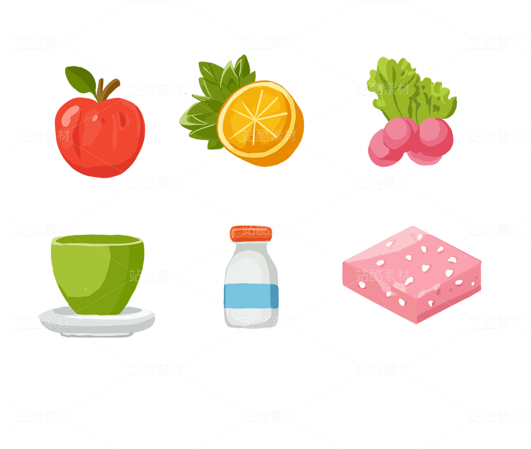 小物件:法棍,西瓜,面包,牛奶,吐司,蛋糕
