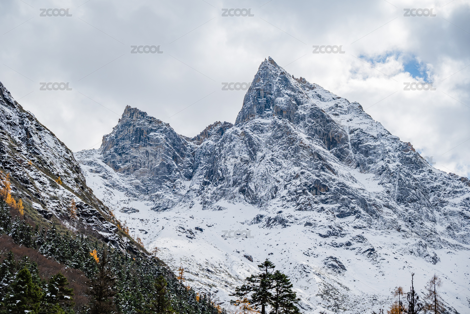 四川阿坝四姑娘山双桥沟冬季雪山风光