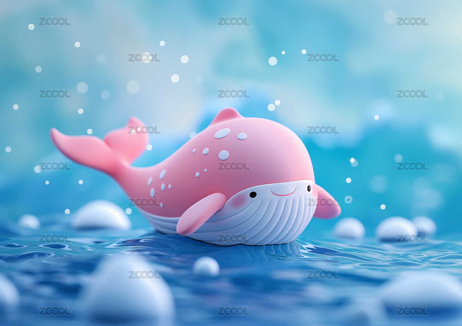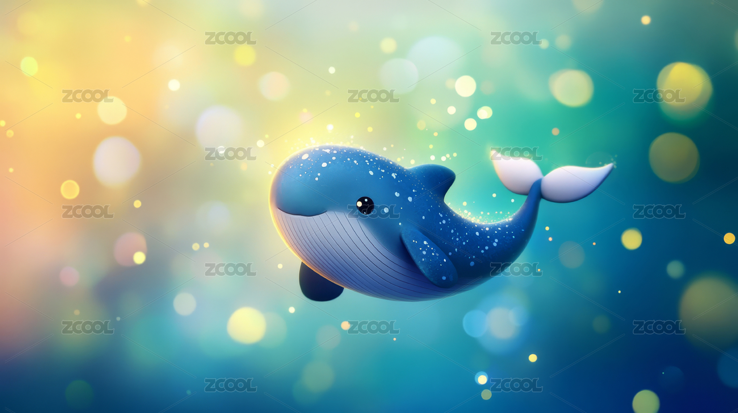 鲸鱼可爱唯美野生动物3D卡通插画壁纸