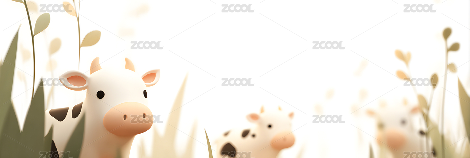 草原上可爱的卡通奶牛