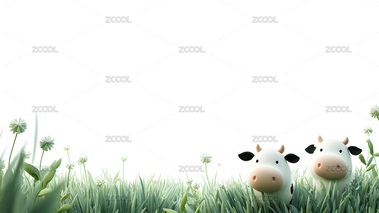 清新可爱的3D卡通奶牛动物自然风景插画