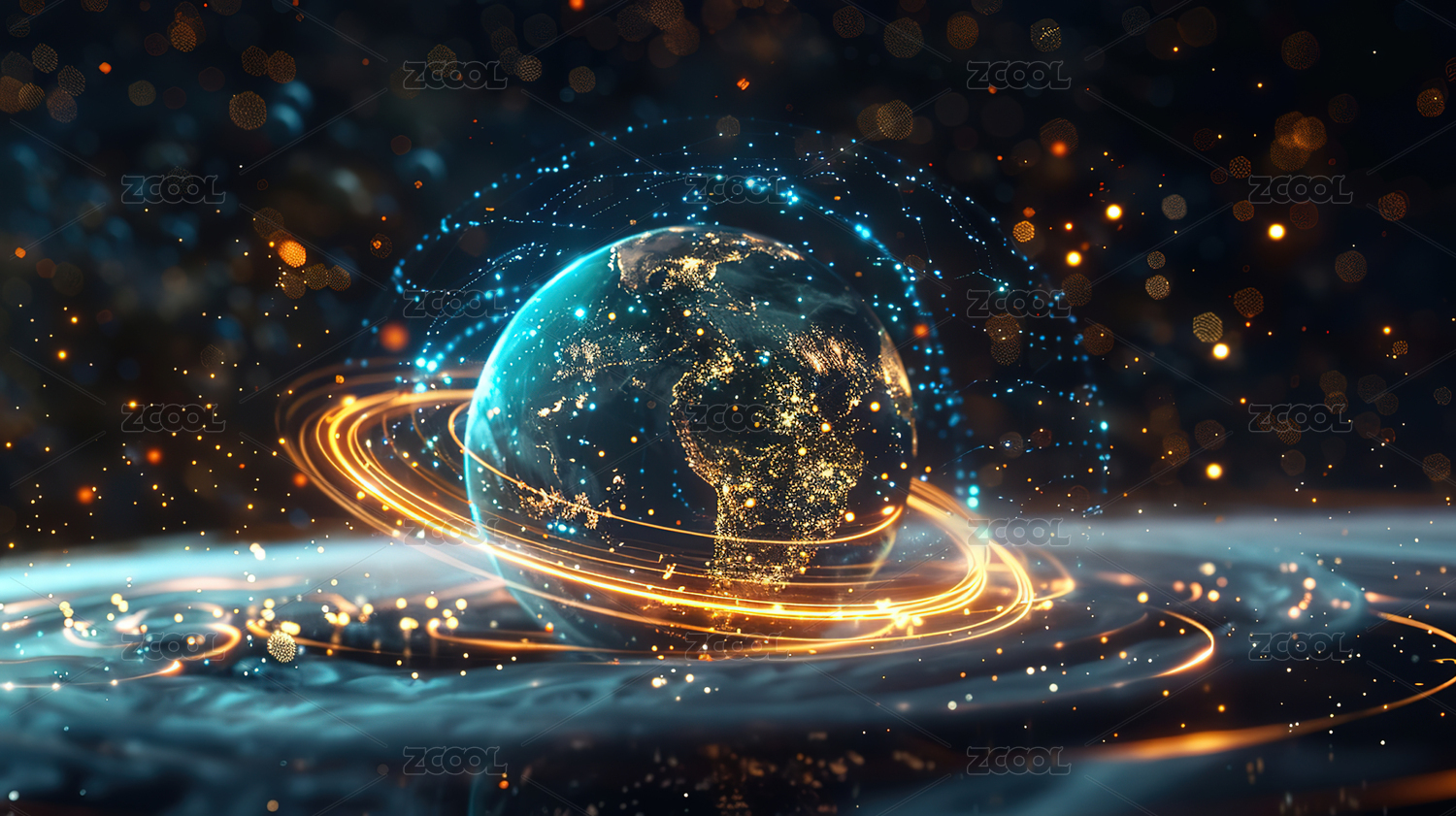 地球,光环,夜景,灯光,星光,黑夜,粒子,科技,梦幻,宇宙