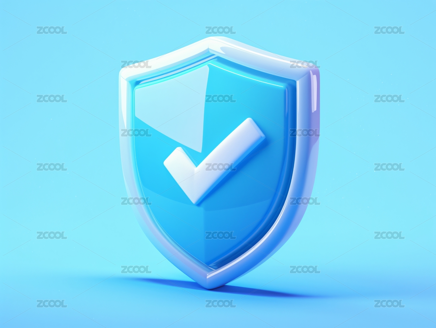 保护,图标,3D,简约,确认,验证,认证,蓝色盾牌,对号标志,安全性