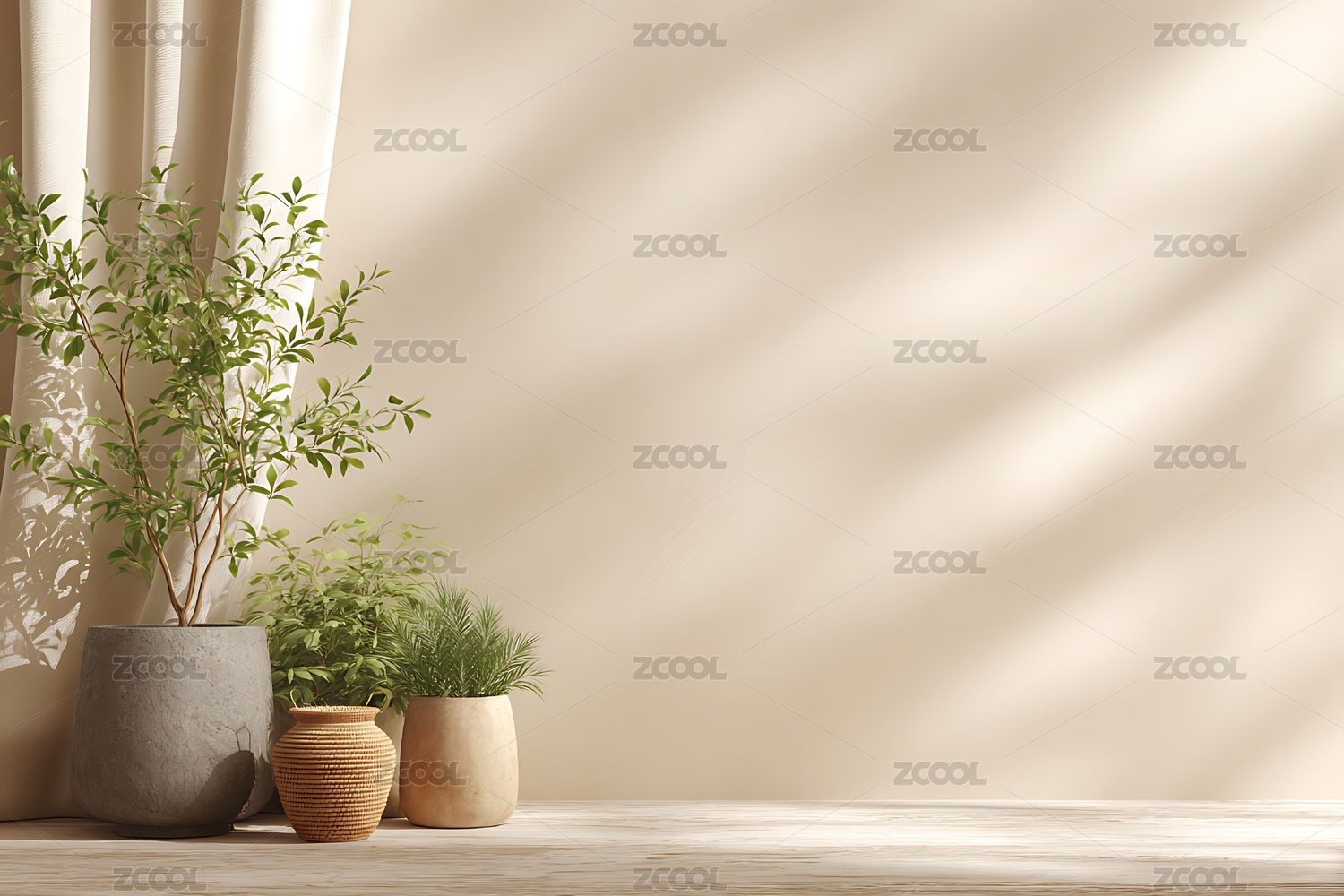 干净的室内白墙和绿植装饰简约空白渲染背景
