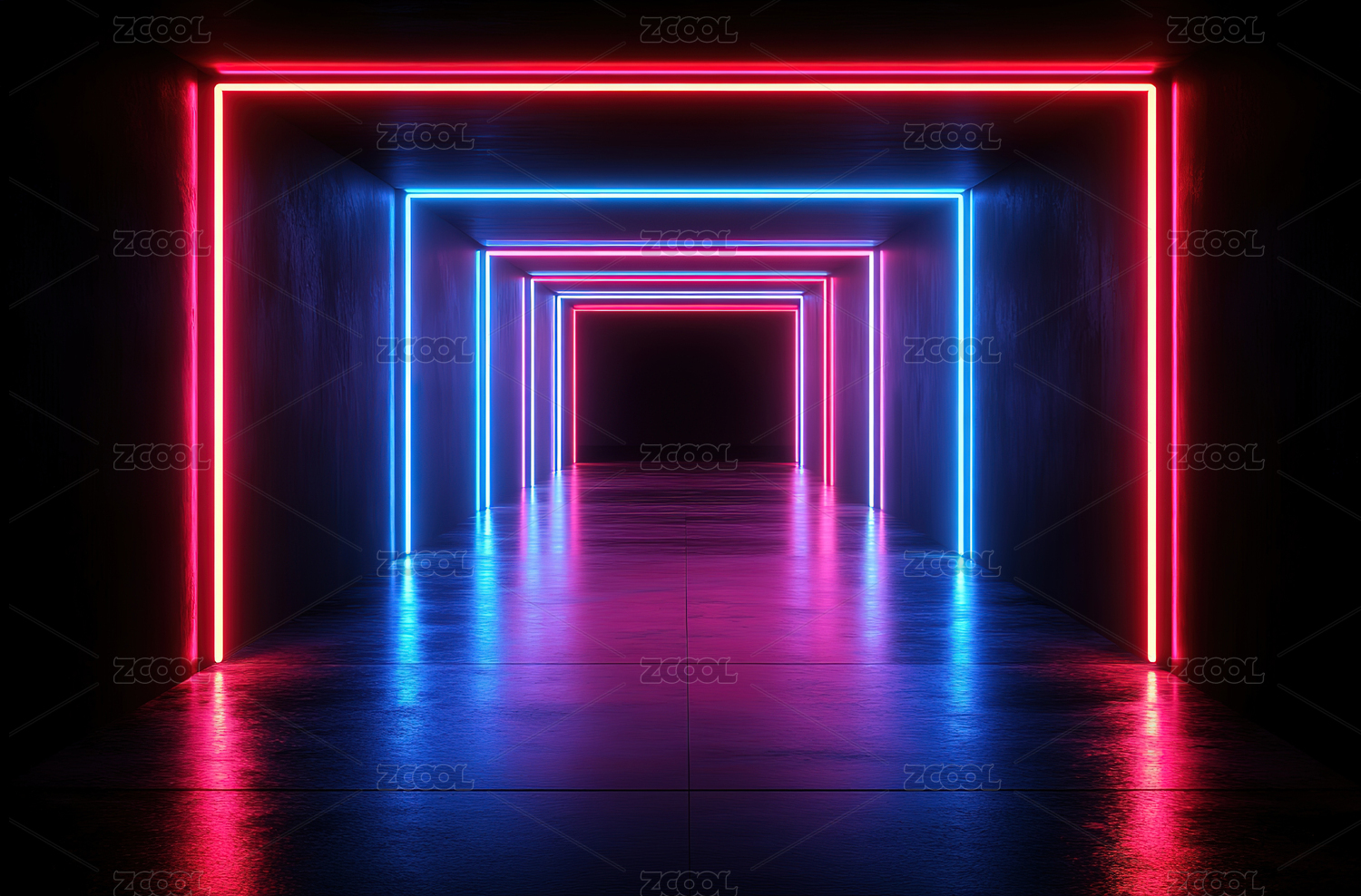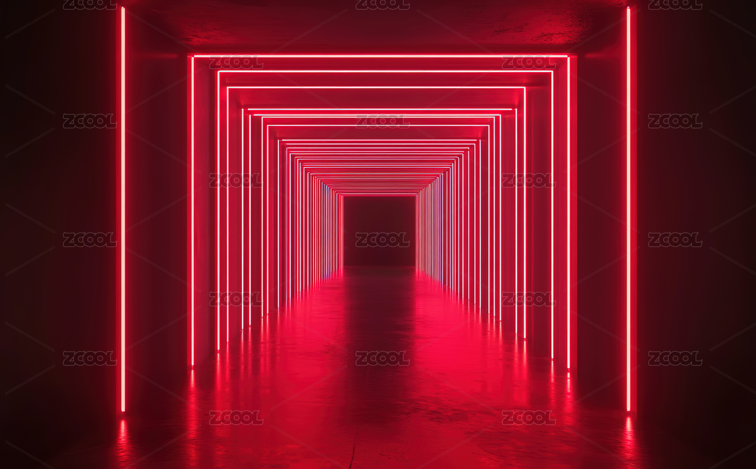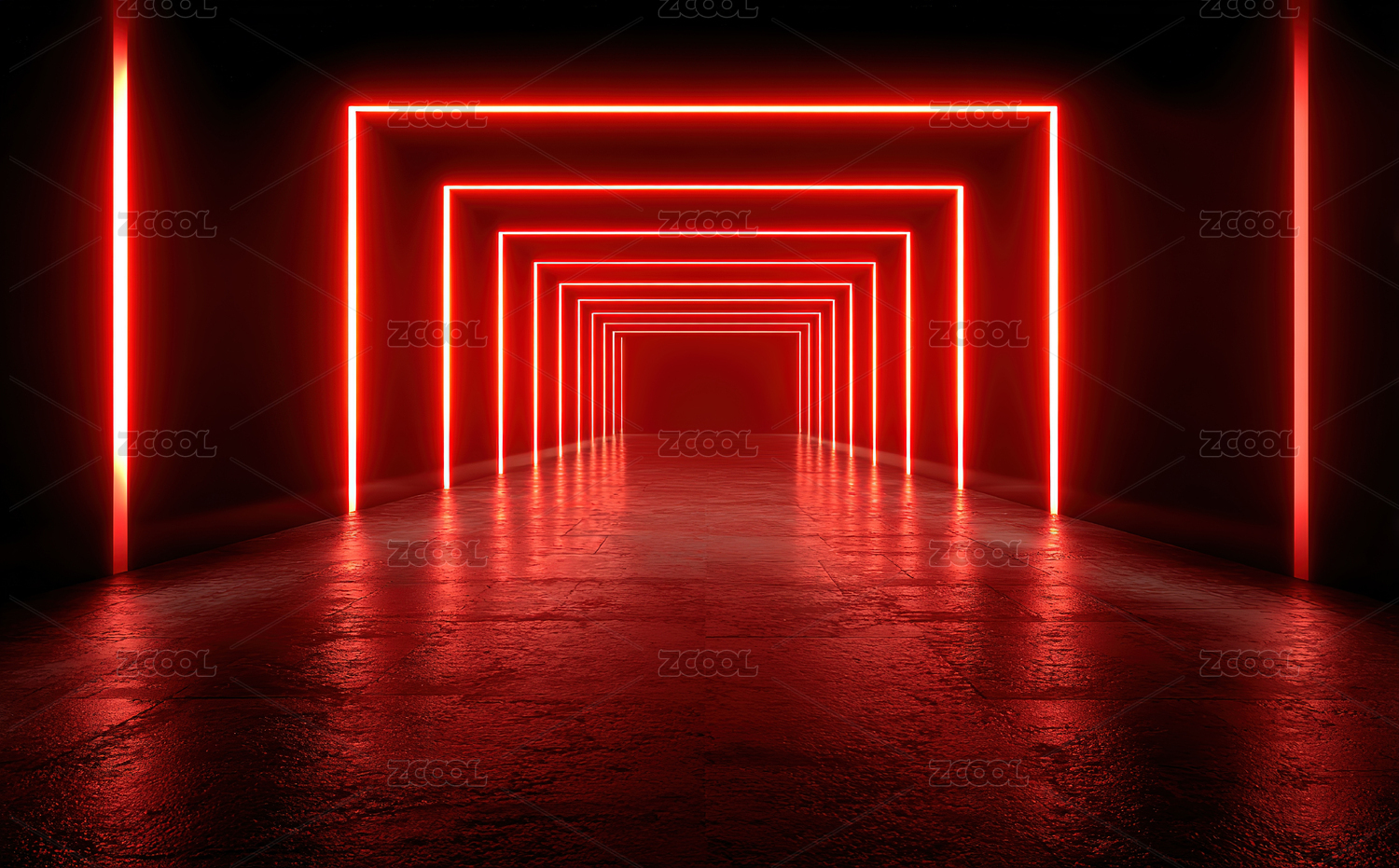 背景,几何,发光,空间,黑暗,立体,红色,霓虹,通道,隧道