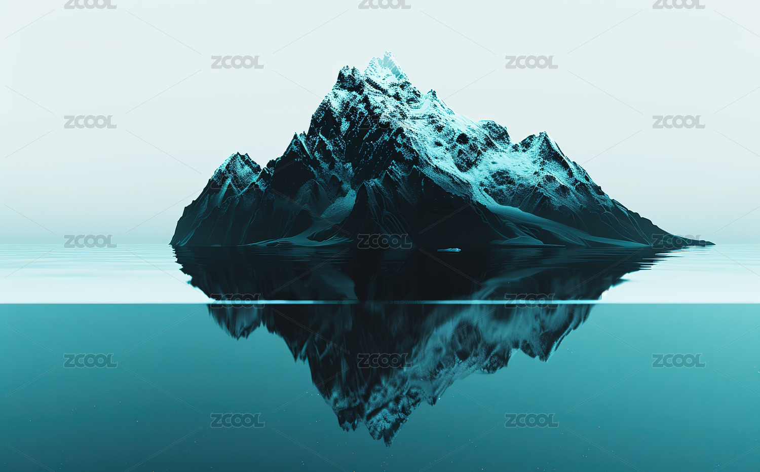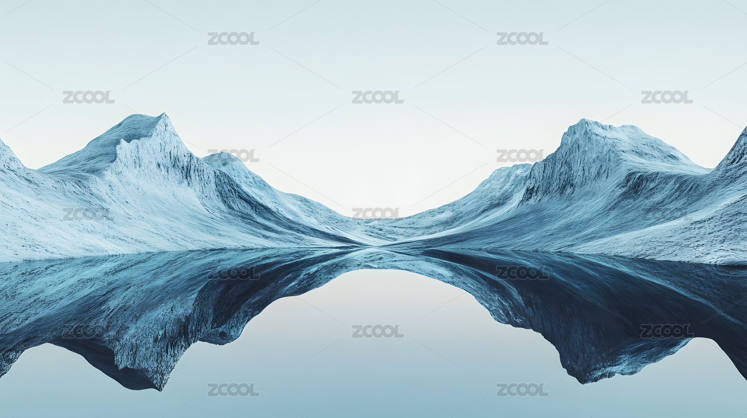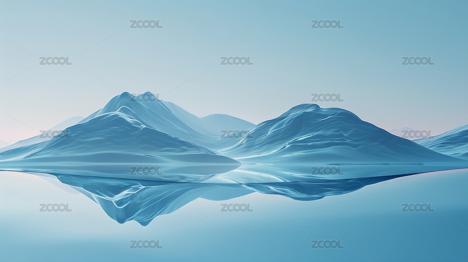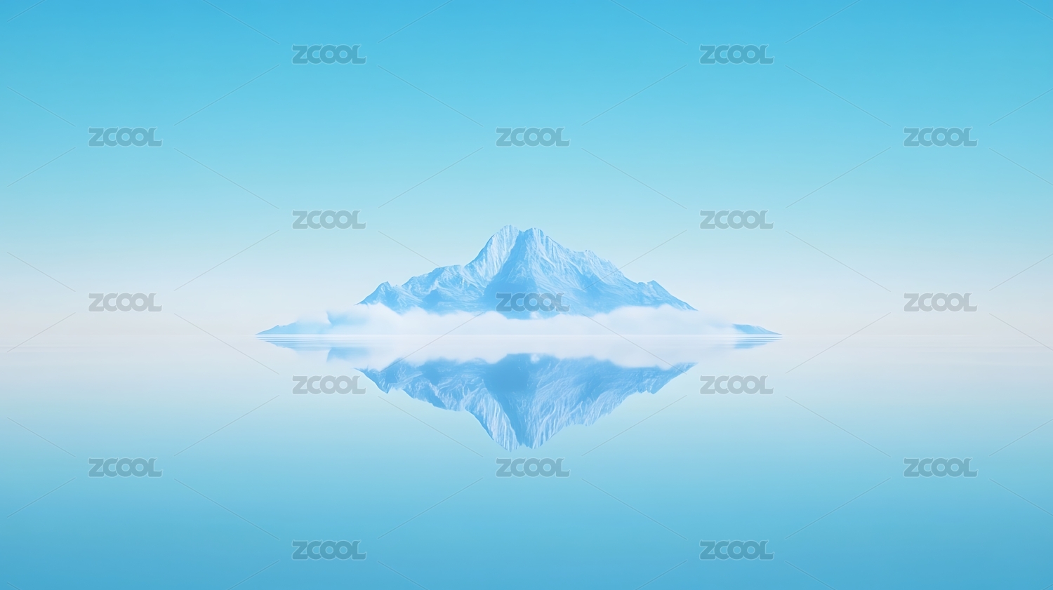 背景,蓝色,山峰,意境,干净,宁静,视觉,简洁,倒影,水面