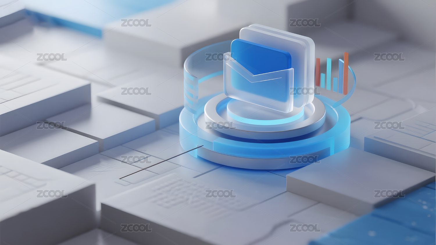 蓝色科技立方体数据图表展示