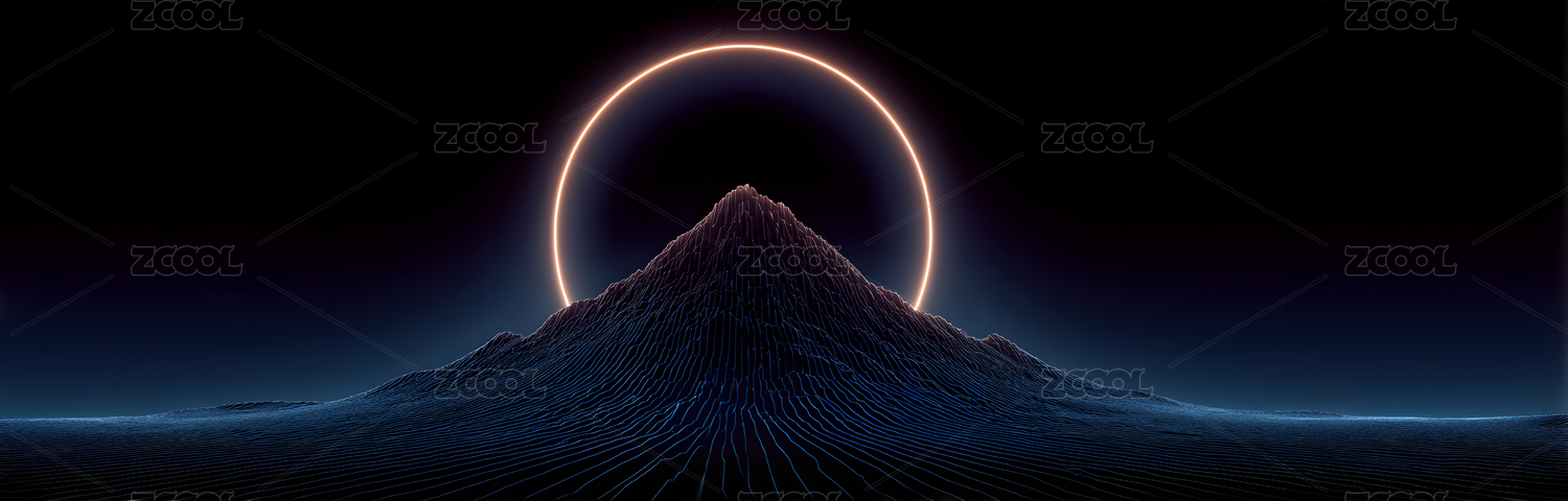 山脉,光环,夜空,蓝紫,渐变,峰峦,轮廓,阴影,橙色,蓝色