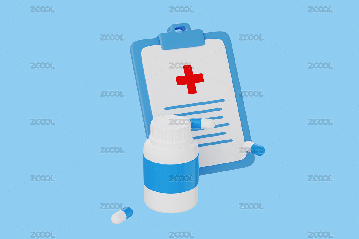 检查报告与药瓶3D渲染