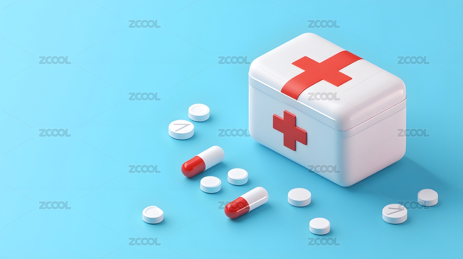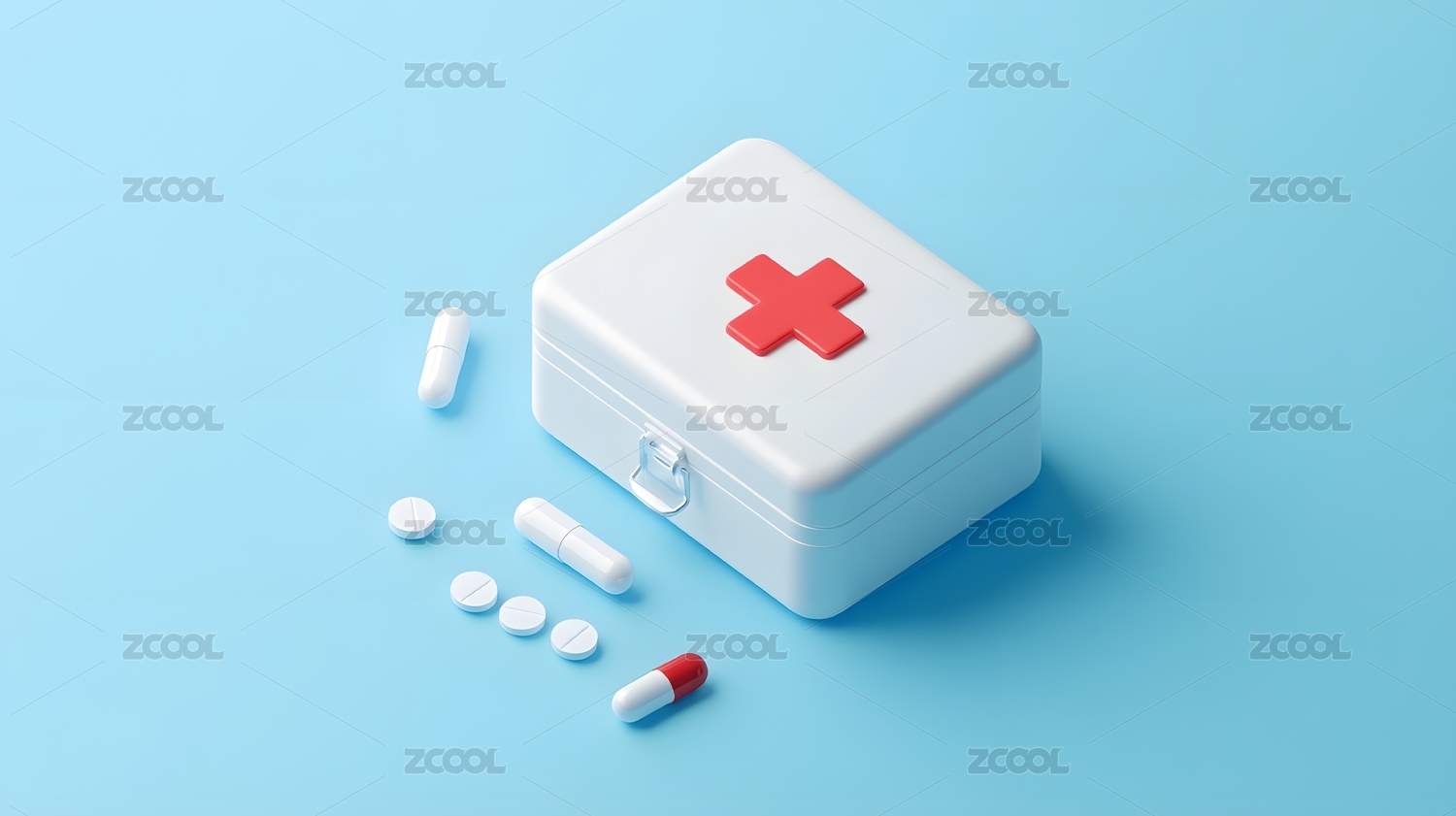 白色医药箱与胶囊 三维渲染