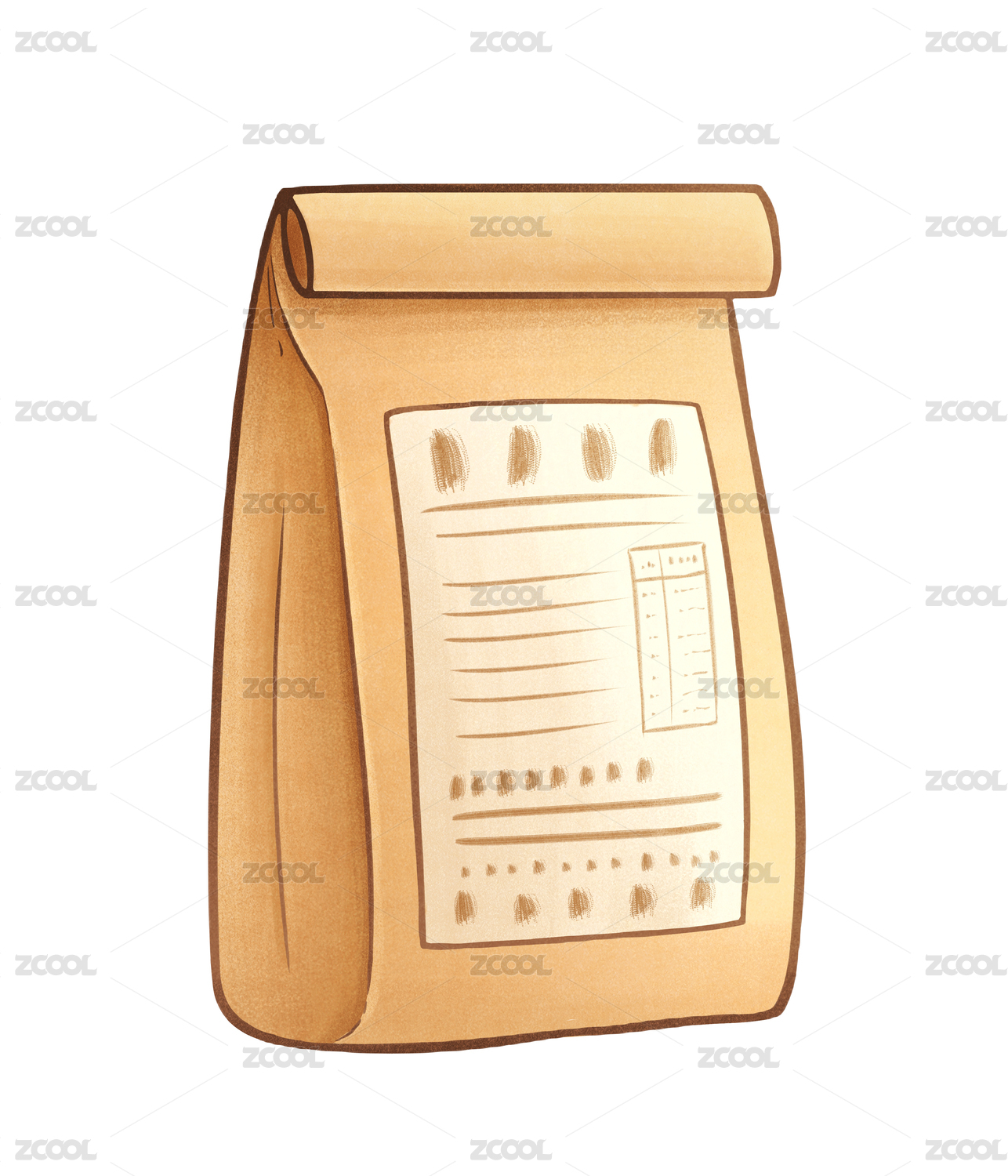 插画,卡通,装饰,咖啡袋,棕色,标签,封口,商品,食品,日常用品
