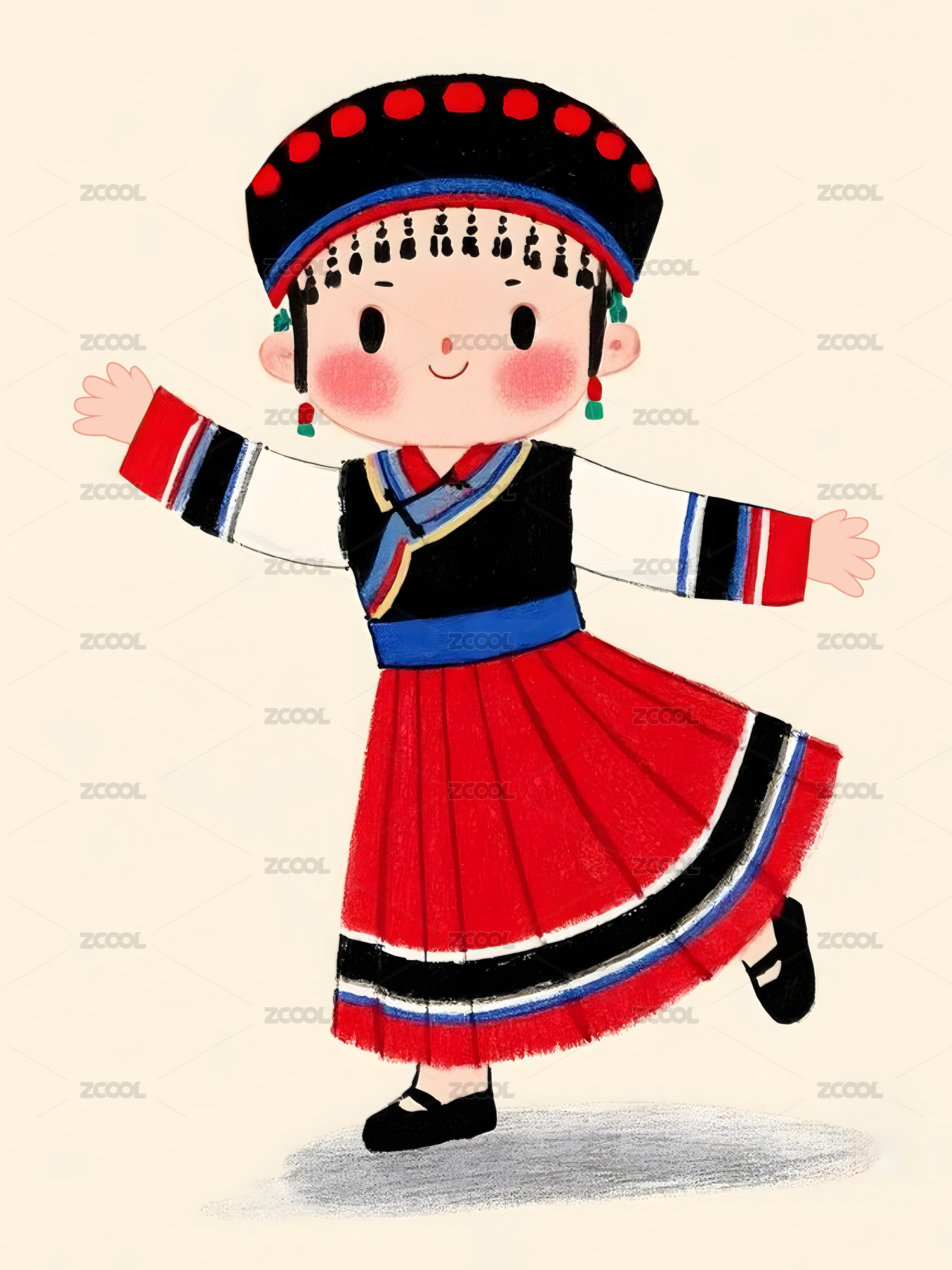 五十六民族苗族手绘插画卡通人物