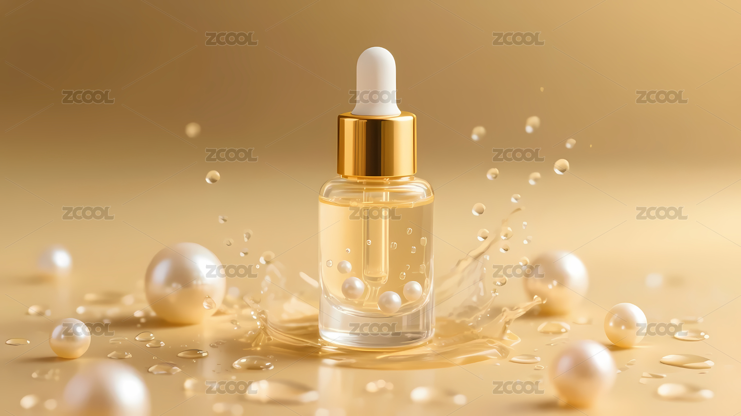 白色滴管瓶与金色液滴