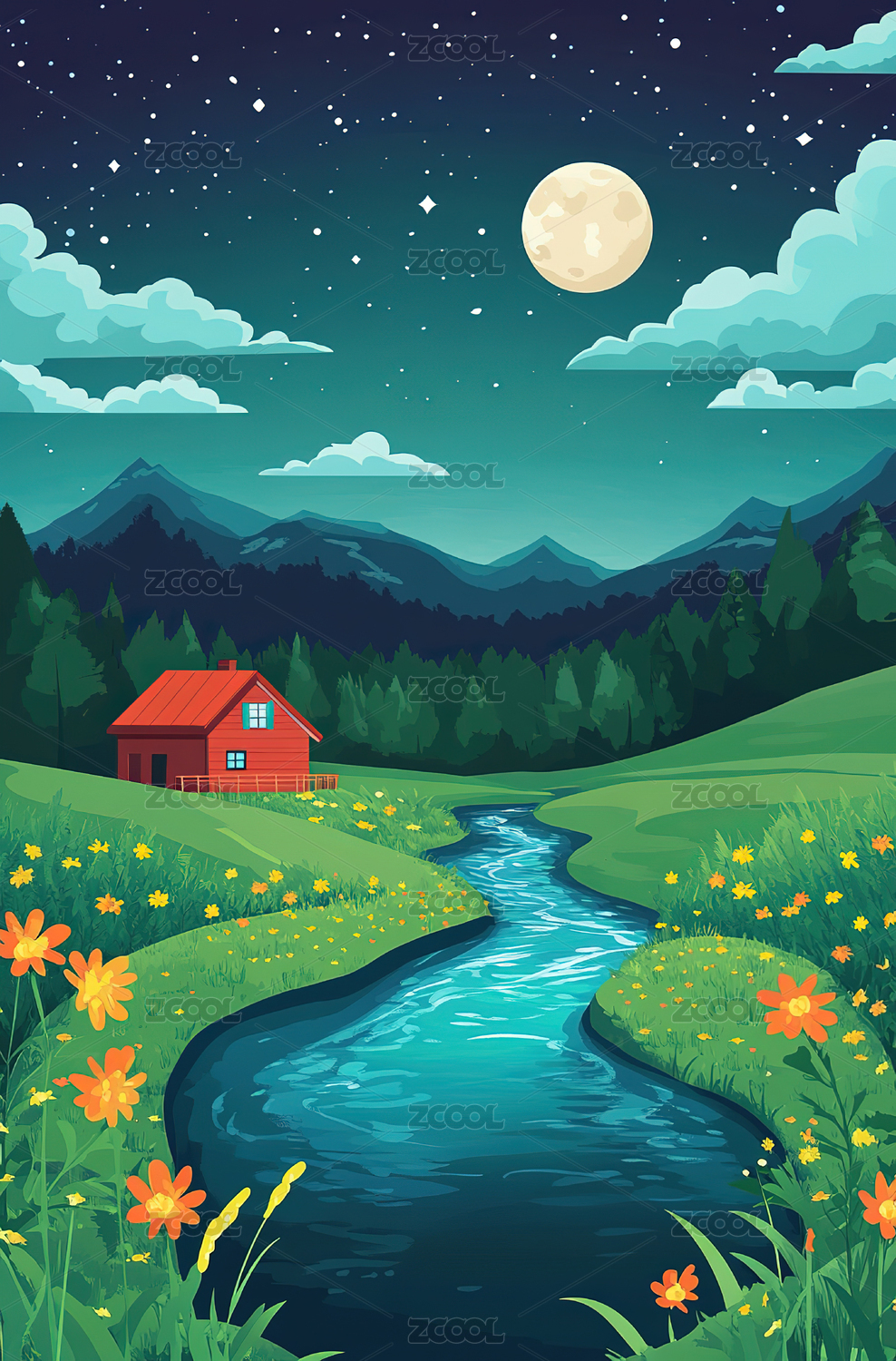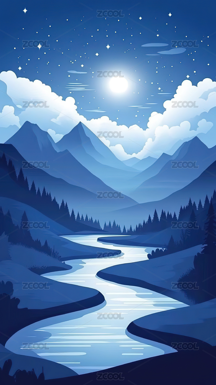 艺术,设计,山脉,风景,天空,景色,自然,宁静,颜色,插画
