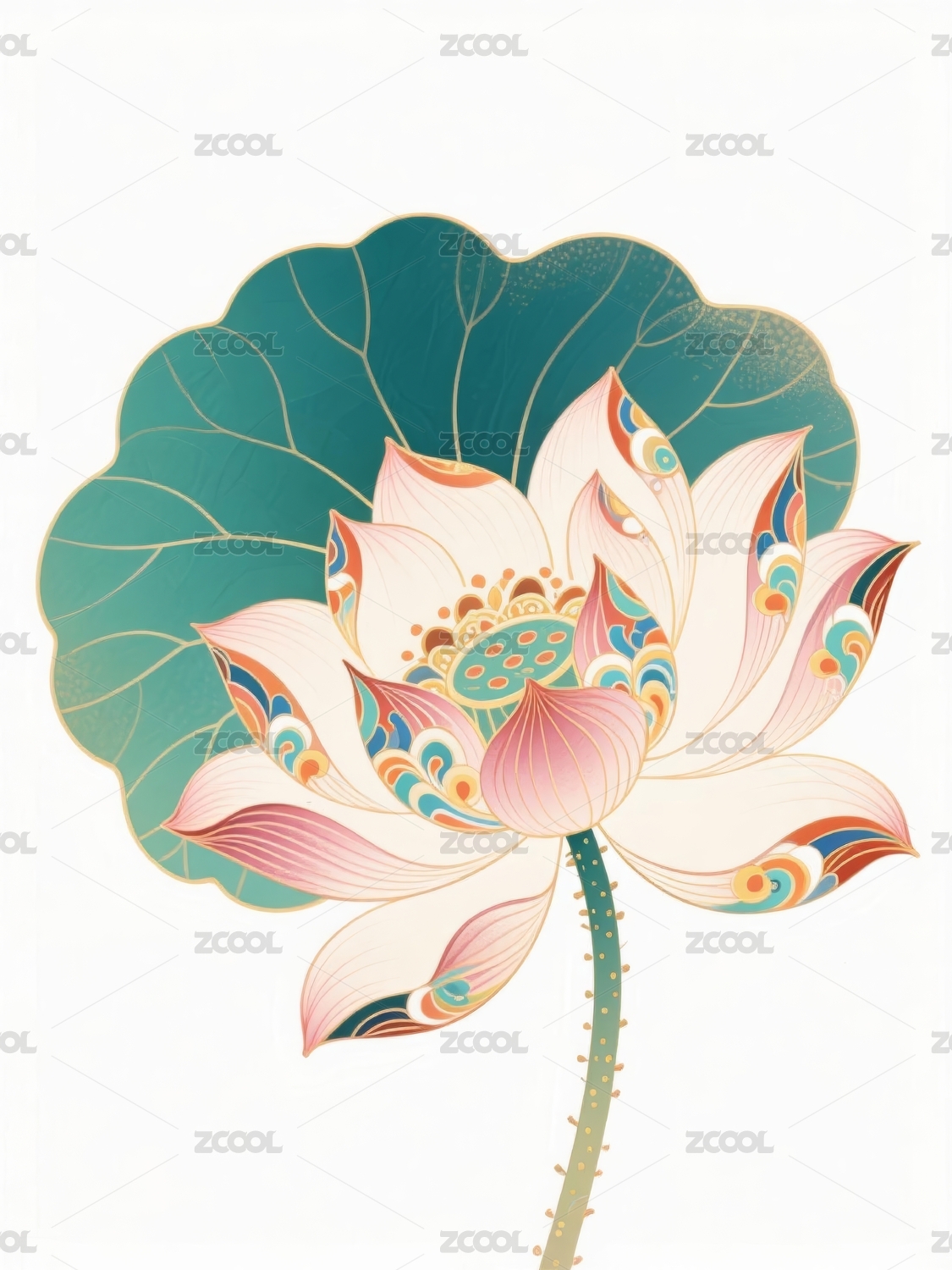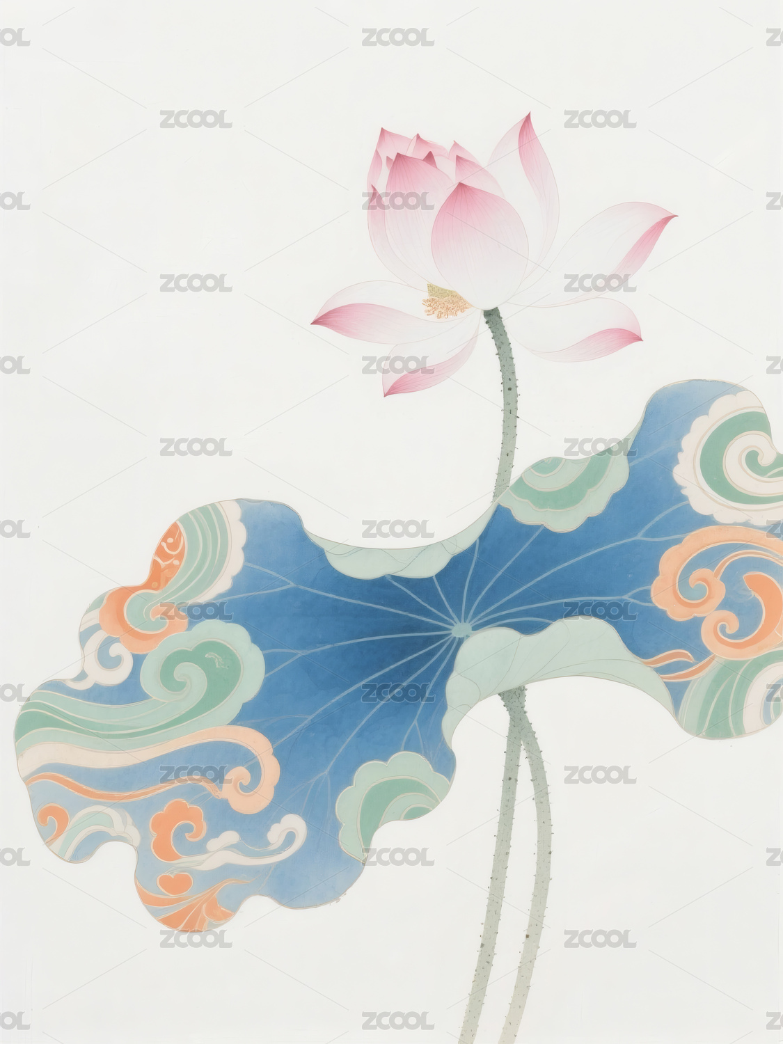 莲花,荷花,荷叶,国潮,纹样,插画,美丽,绽放,夏至,大暑