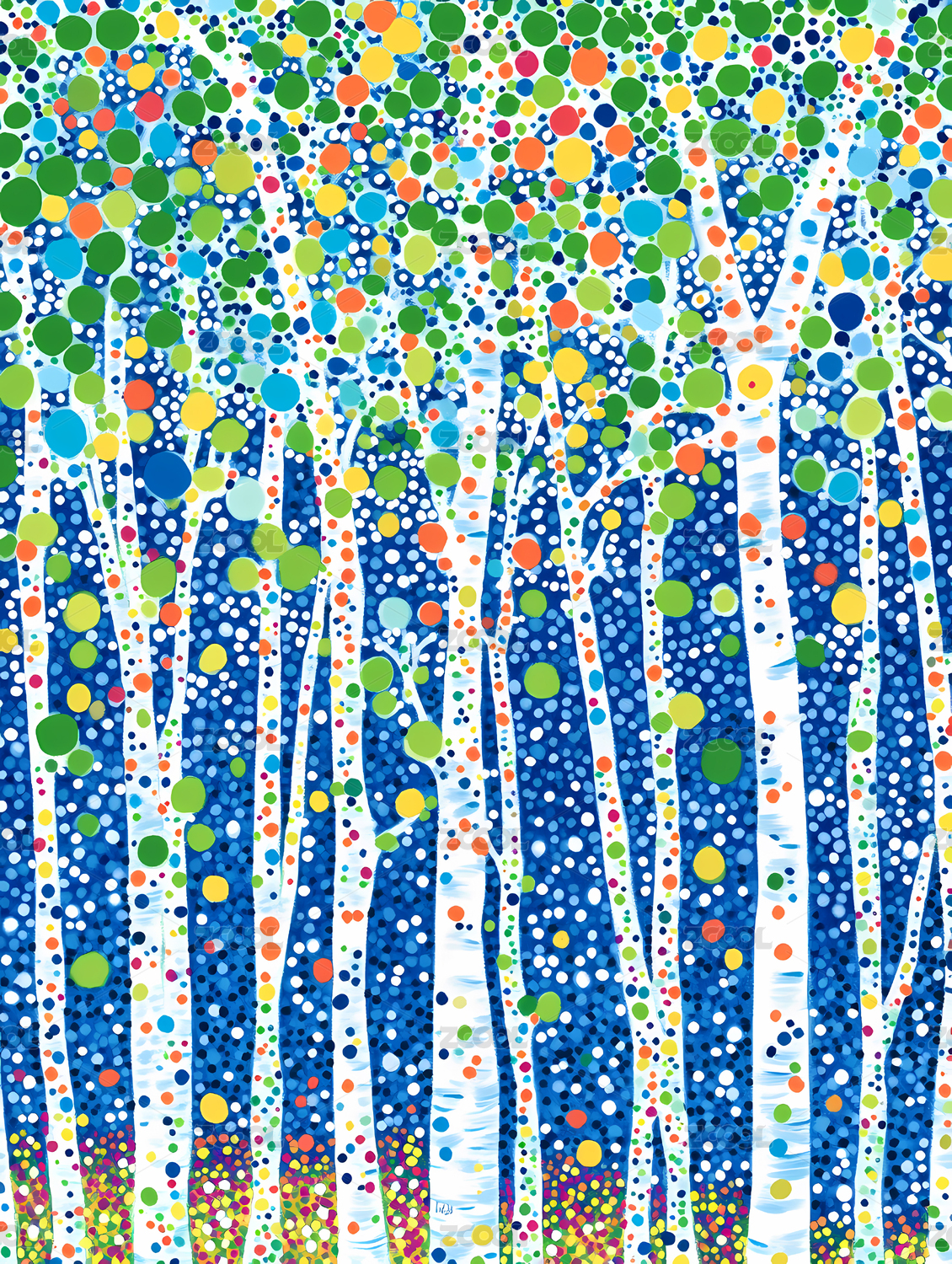 色彩斑斓的桦树抽象画