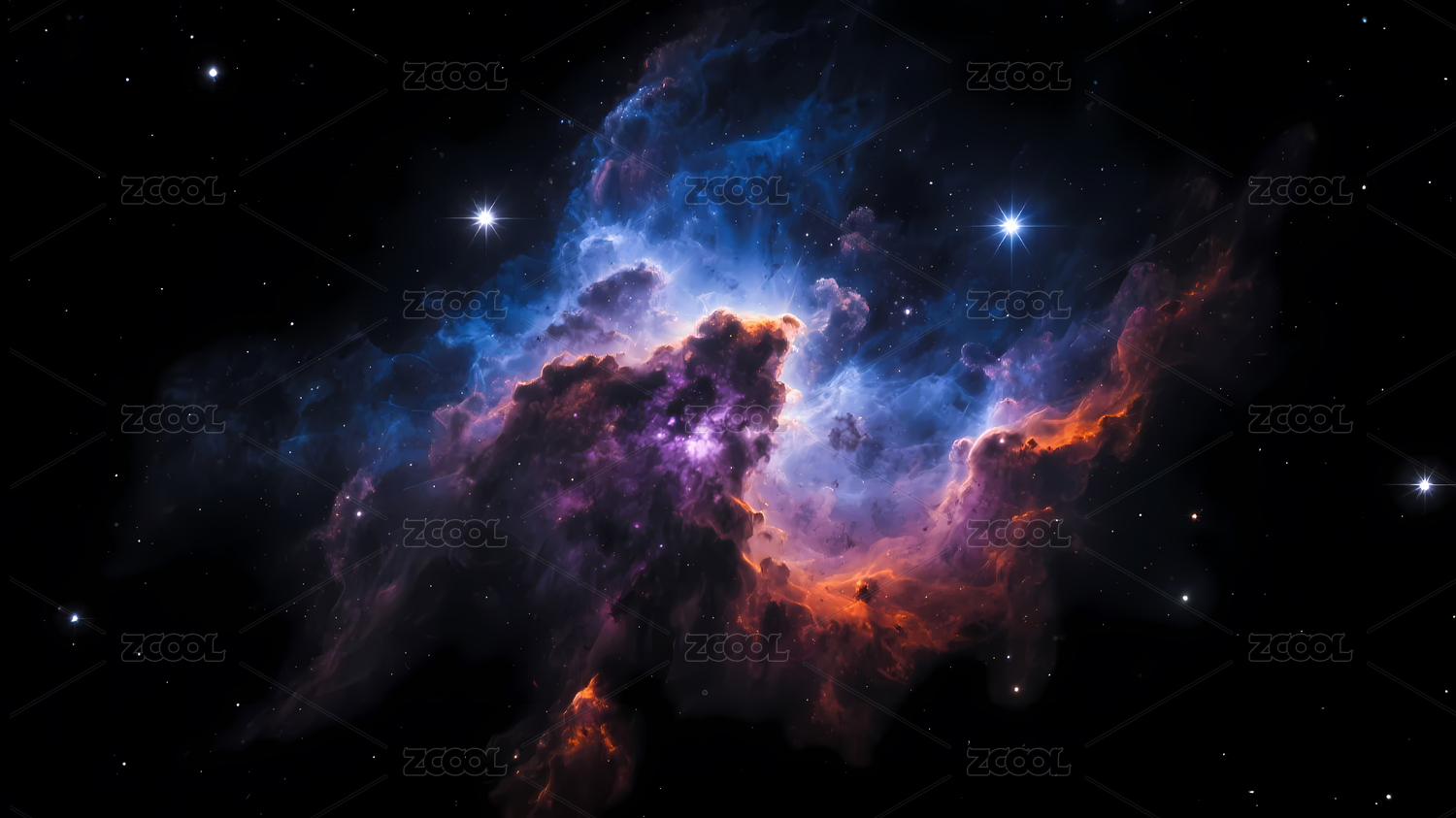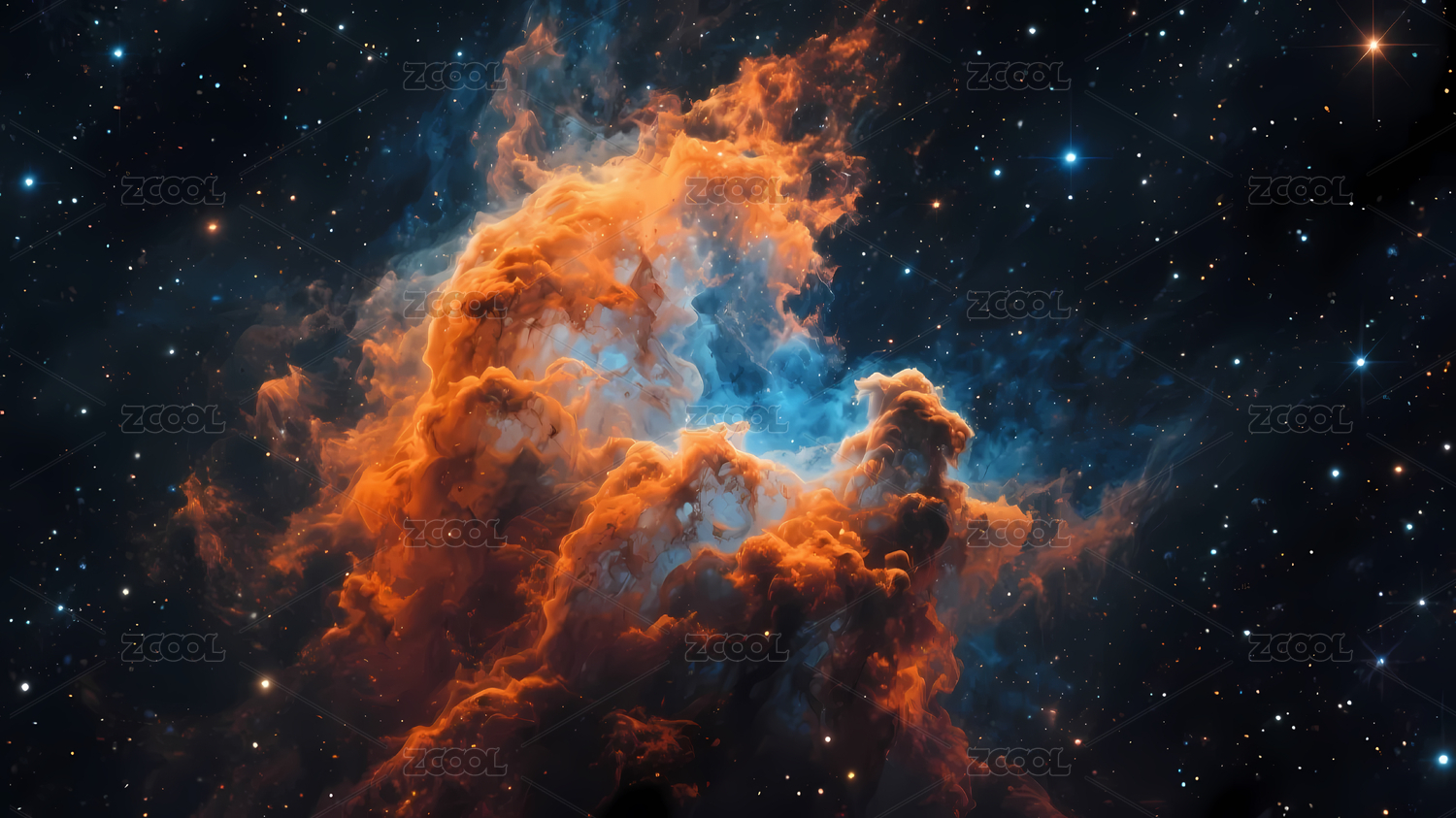 蓝色,橙色,背景,闪烁,深邃,宇宙,星空,星云,星星,颜色
