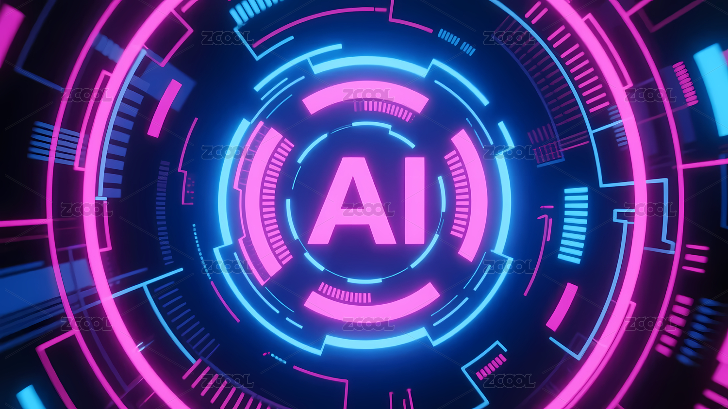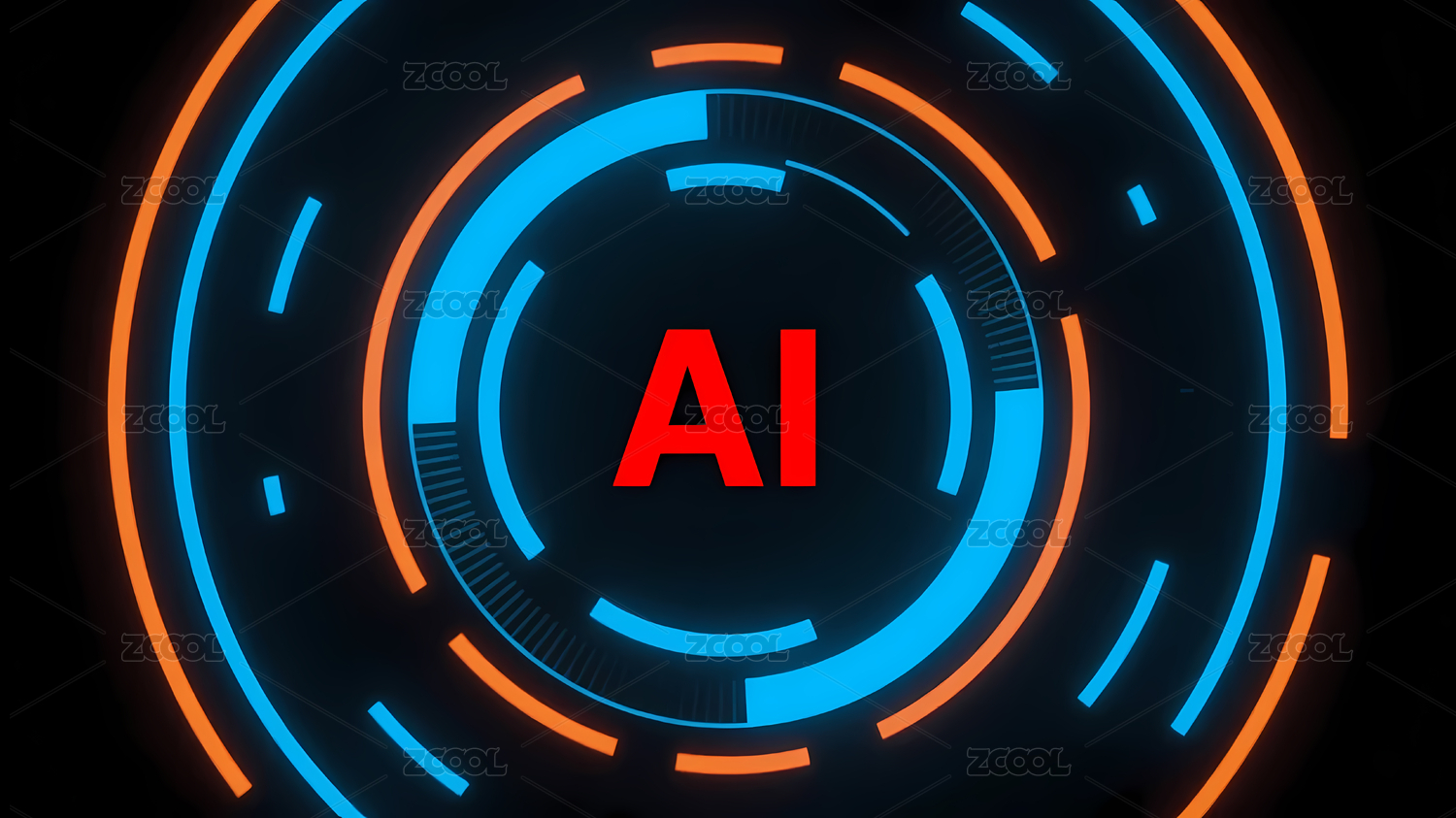 蓝色,背景,科技,未来,主体,红色,霓虹,AI,环形,光圈