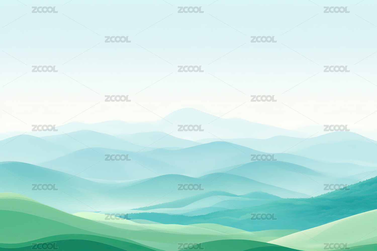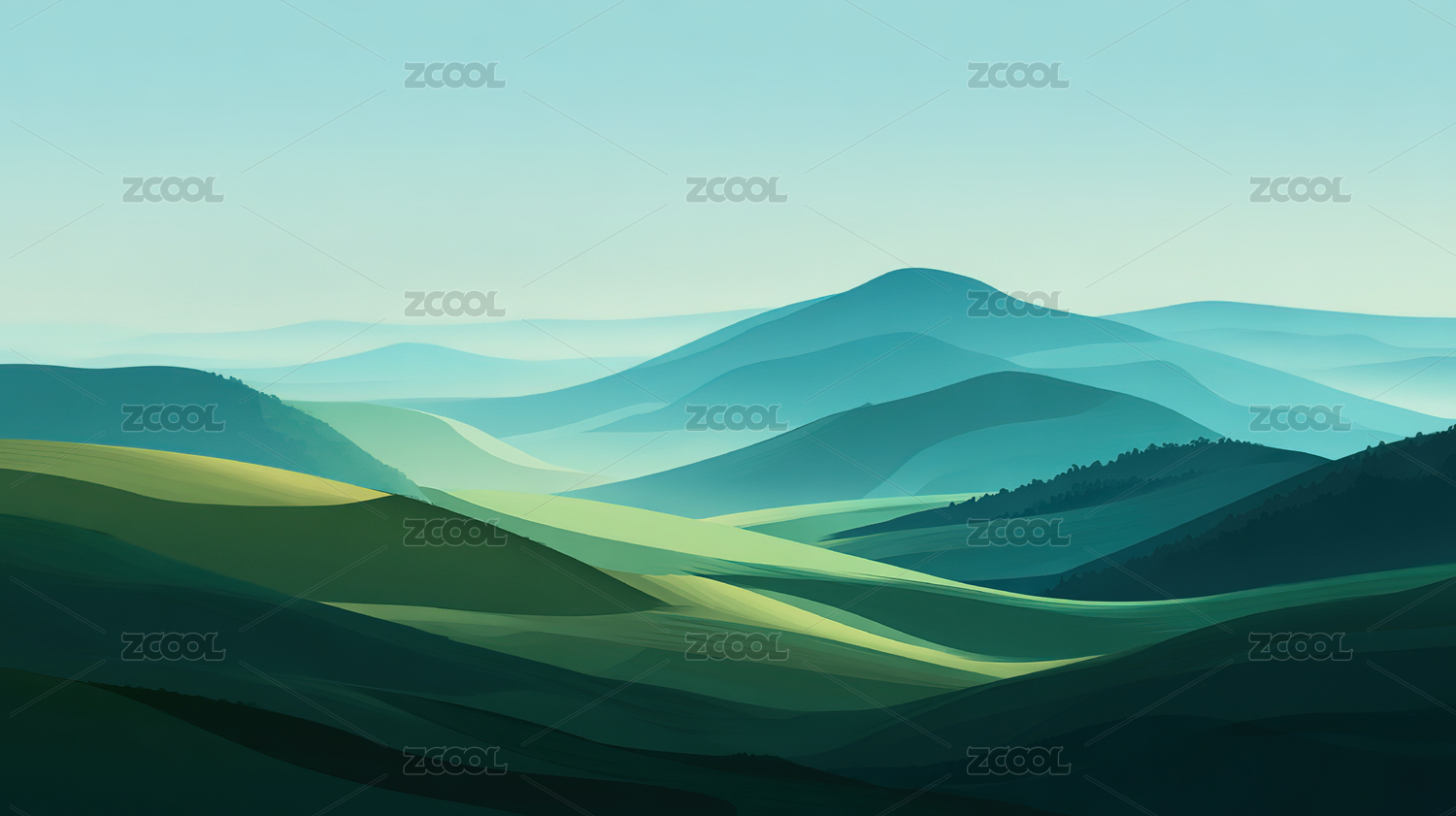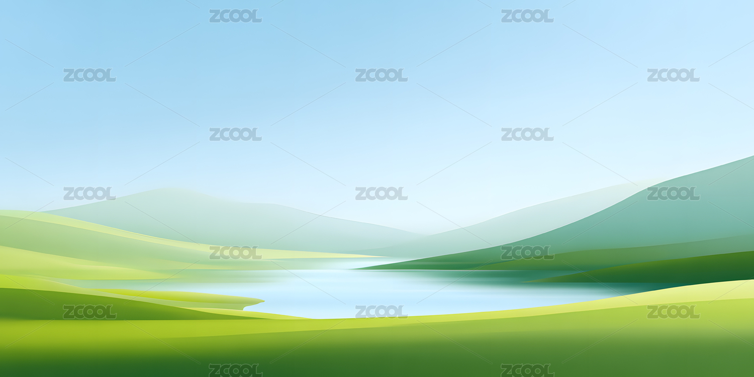 蓝天白云绿色草地湖泊卡通动漫背景插画壁纸